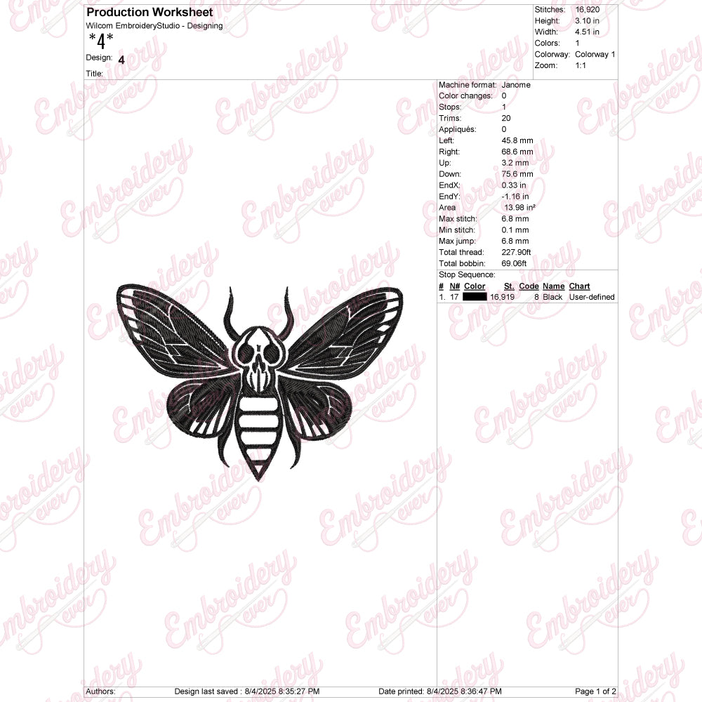 Let your creativity shine with this delightful Skull Moth embroidery design!