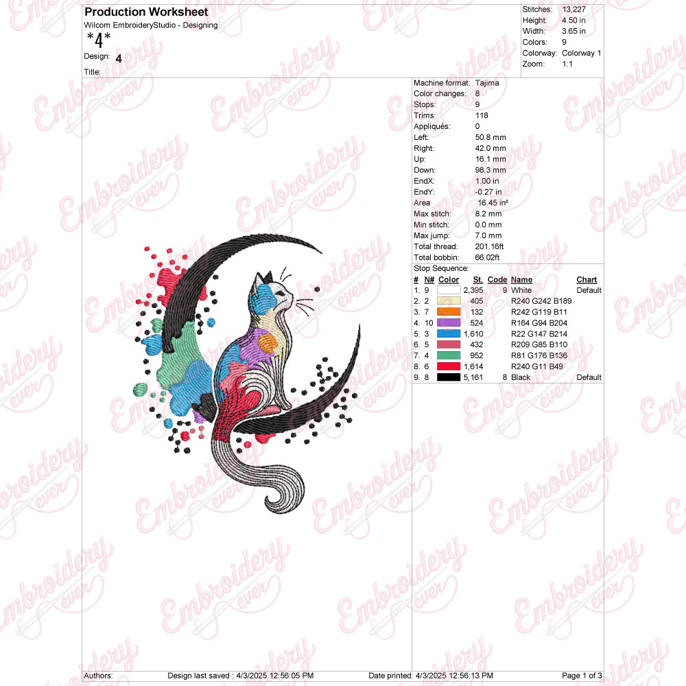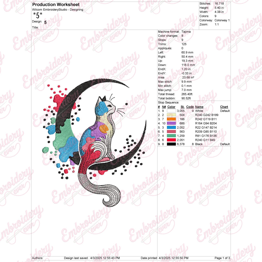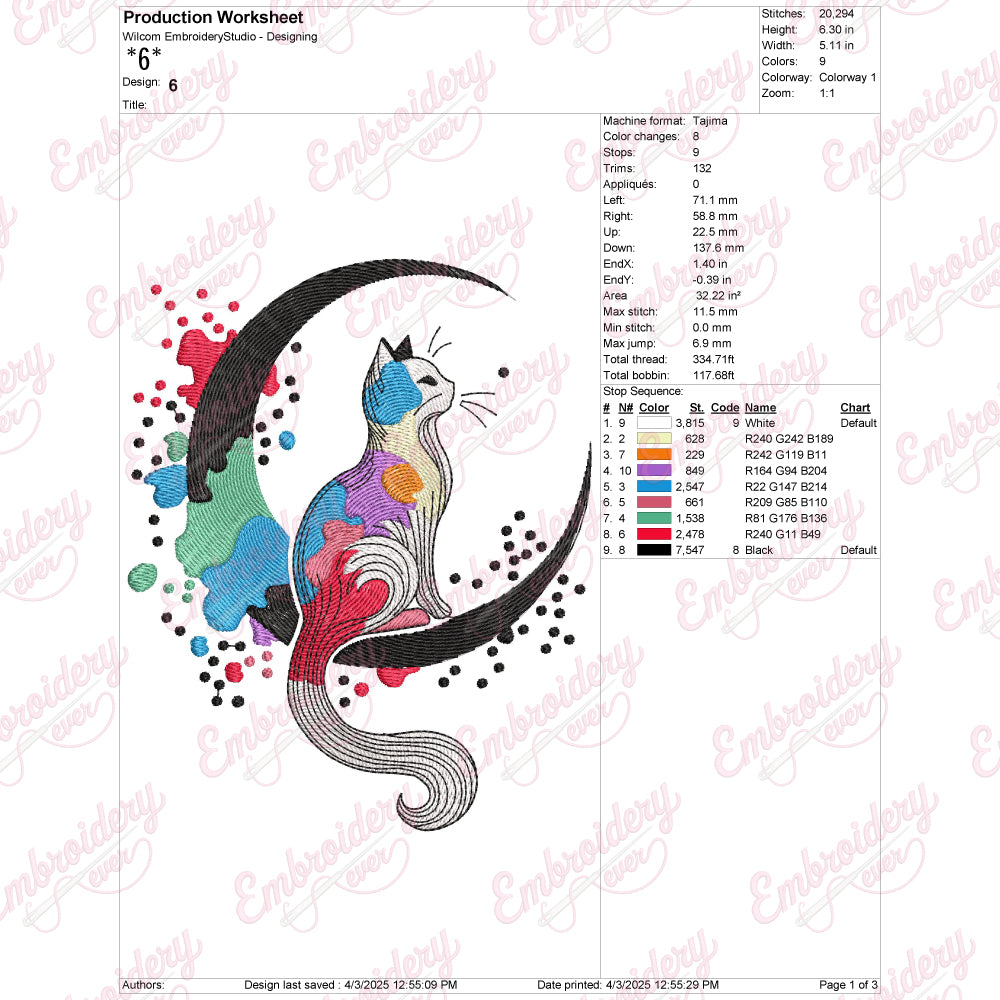 The Cat On The Moon Embroidery Design captures a whimsical and enchanting scene, perfect for adding a touch of magic to your textile projects. This intricate design features a graceful cat perched delicately on a crescent moon, combining elegance with a playful charm. Expertly crafted with fine details, it highlights the cat’s sleek form and the moon’s gentle curve, making it ideal for embellishing garments, accessories, or home décor items. Suitable for various fabric types, this design offers versatility and sophistication, allowing crafters to create unique, eye-catching pieces that stand out with artistic flair and refined craftsmanship.