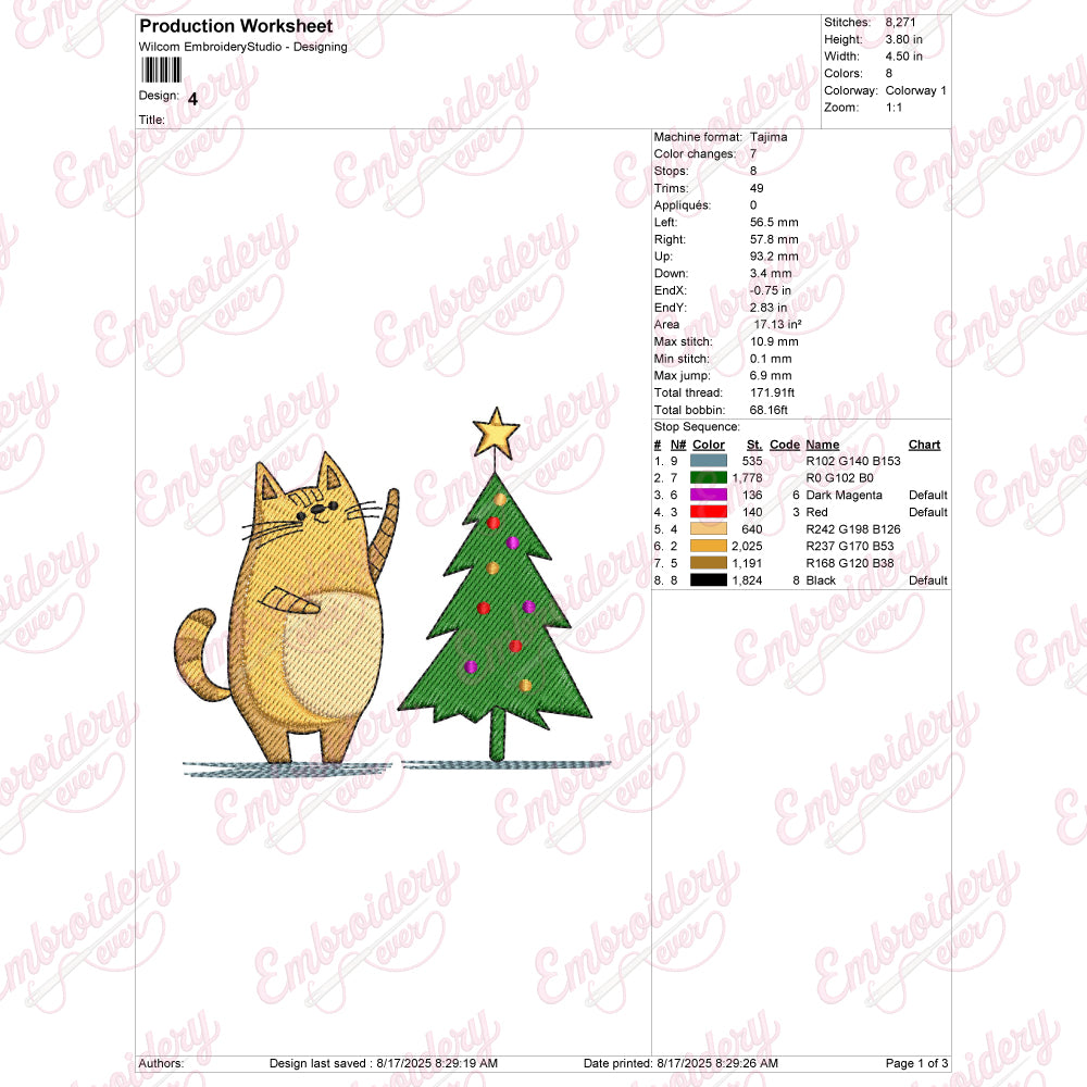 The Cat With Christmas Tree Embroidery Design captures a festive and charming scene ideal for holiday projects. Expertly crafted, this design features a playful cat nestled beside a beautifully decorated Christmas tree, combining intricate stitching details that highlight both the tree’s ornaments and the cat’s fur texture. Perfect for embellishing seasonal apparel, home décor, or gift items, this embroidery design brings warmth and personality to your creations. Its balanced composition ensures easy integration onto a variety of fabric types, while the detailed pattern supports high-quality stitching. This design is a timeless choice for enhancing your holiday-themed embroidery collection with sophistication and cheer.