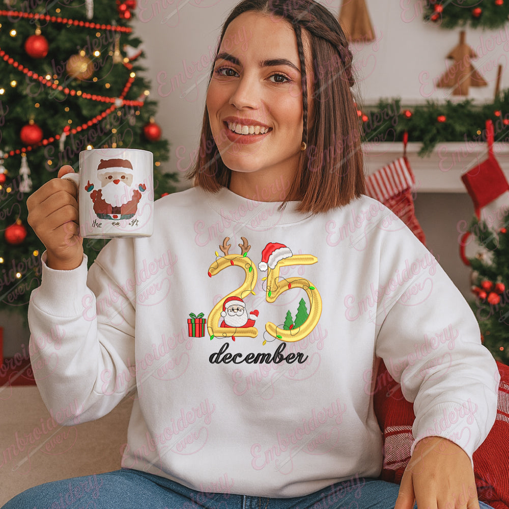 Christmas 25th December Celebration Digital Download Machine Embroidery Design