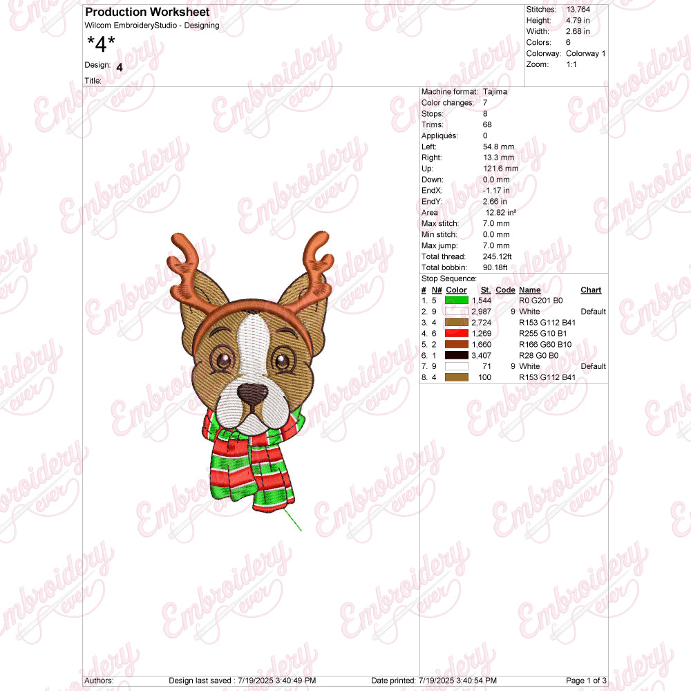Celebrate the festive season with the Christmas Canine Charm Embroidery Design, a detailed and expert-crafted pattern perfect for holiday projects. Featuring a charming canine motif adorned with seasonal elements like holly, ornaments, and cozy winter accessories, this design brings warmth and joy to any fabric. Ideal for creating personalized gifts, apparel, or home décor, it captures the spirit of Christmas while showcasing fine embroidery artistry. The design’s intricate stitches and balanced composition ensure a professional finish, making it suitable for both advanced hobbyists and experienced embroiderers seeking to add an elegant, festive touch to their creations.