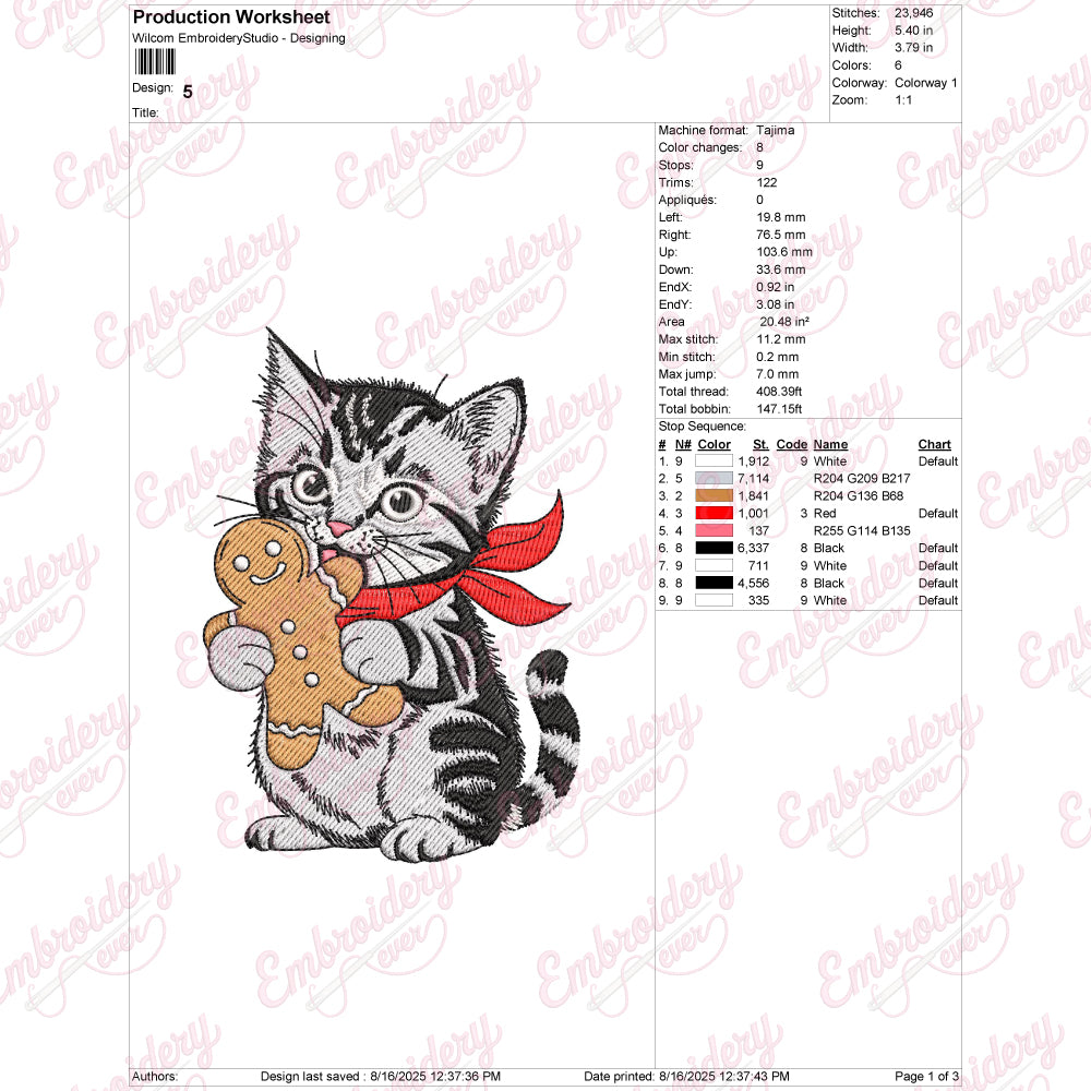 Let your creativity shine with this delightful Christmas Cat Eating Gingerbread embroidery design!