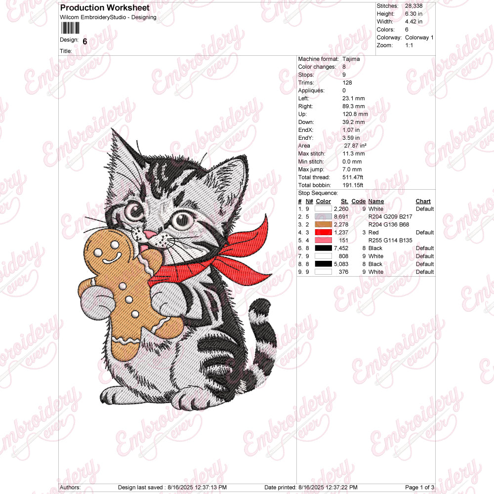 Celebrate the festive season with the Christmas Cat Eating Gingerbread Embroidery Design—a charming and detailed pattern perfect for holiday projects. This design features a playful cat enjoying a classic gingerbread cookie, capturing the warmth and joy of Christmas. Expertly crafted with fine lines and rich textures, it offers excellent clarity and depth, making it ideal for embellishing holiday linens, garments, or gifts. Suitable for a range of fabric types, this embroidery design is digitized for smooth stitching and precise color transitions. Bring a cozy, whimsical touch to your embroidery creations with this delightful seasonal motif.