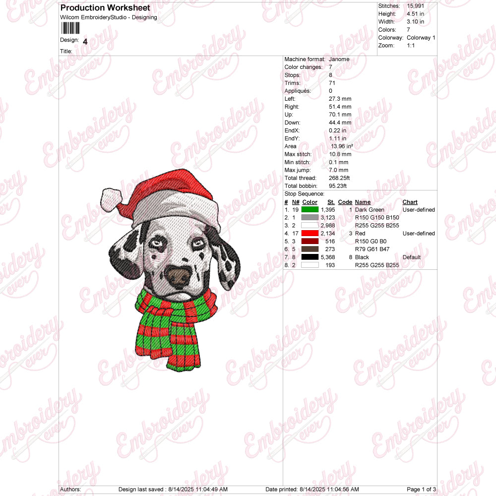 Capture the festive spirit with the Christmas Dalmatian Embroidery Design, a detailed and charming pattern perfect for seasonal projects. This design features an adorable Dalmatian adorned with classic Christmas elements such as a Santa hat, holly leaves, or festive scarves, combining holiday cheer with the beloved spotted dog motif. Expertly crafted for precision and clarity, it delivers clean stitch lines that enhance the final embroidery’s visual appeal. Ideal for embellishing holiday garments, accessories, or home décor, this design brings warmth and personality to your creations. Its versatility suits a range of fabric types, making it a reliable choice for professional or hobbyist embroiderers seeking seasonal elegance with a playful touch.