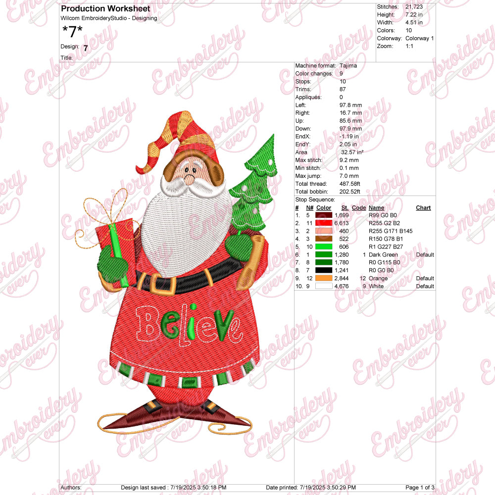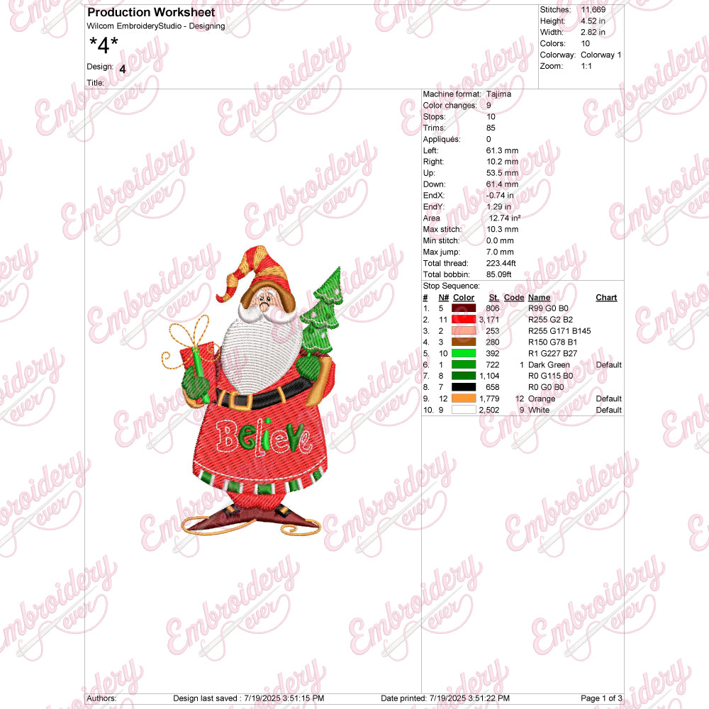 Celebrate the festive season with the Christmas Santa With Tree And Gift Embroidery Design, a detailed and charming pattern perfect for adding holiday spirit to your projects. This design features a classic Santa Claus adorned in traditional attire, accompanied by a beautifully decorated Christmas tree and a gift, symbolizing the joy and generosity of the holiday season. Ideal for embellishing garments, home décor, or festive accessories, this embroidery design offers precise stitching detail for a professional finish. Compatible with most embroidery machines, it brings warmth and tradition to your creative work, making your seasonal crafts stand out with expert craftsmanship and festive charm.
