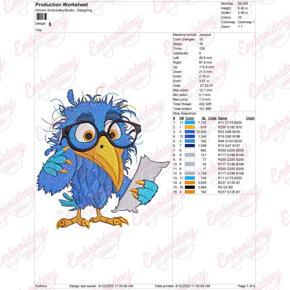 Let your creativity shine with this delightful Crazy Bird embroidery design!