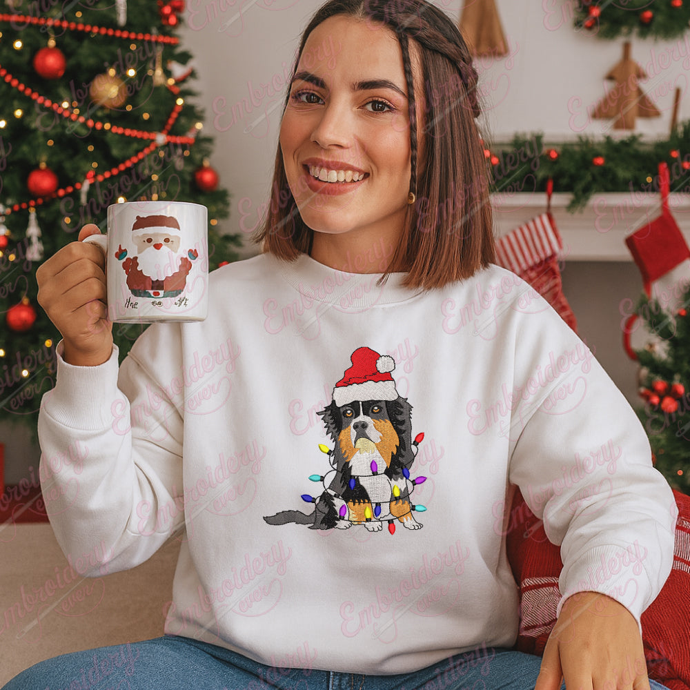Let your creativity shine with this delightful Cute Bernese Mountain Christmas Lights embroidery design!
