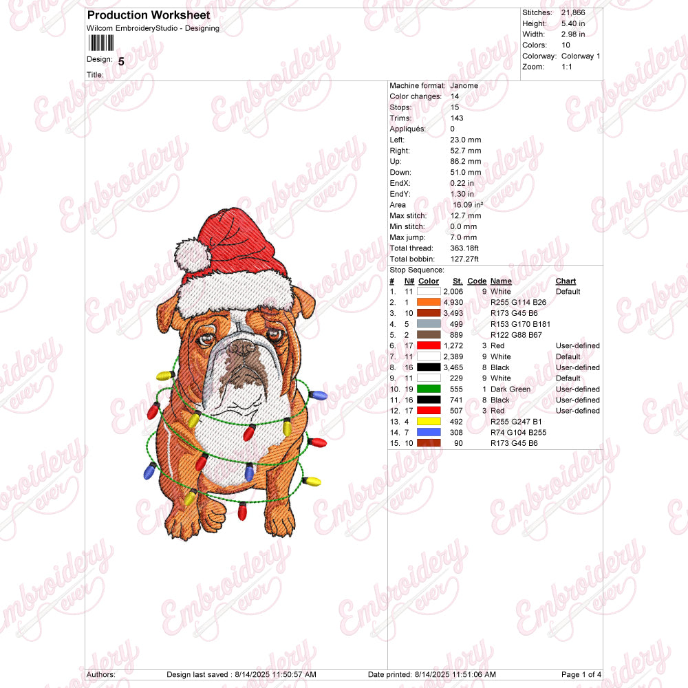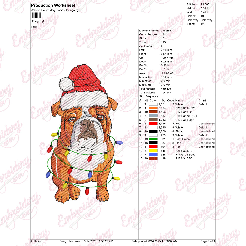 Celebrate the holiday season with our English Bulldog Christmas Embroidery Design, expertly crafted to add charm and festive spirit to any fabric project. This detailed design captures the distinctive features of the beloved English Bulldog, adorned with classic Christmas elements such as a Santa hat, holly sprigs, or a cozy scarf. Perfect for embellishing garments, home décor, or personalized gifts, this embroidery design brings warmth and personality to your creations. Meticulously digitized for precise stitching and vibrant color impact, it integrates seamlessly with most embroidery machines, ensuring professional-quality results. Ideal for pet lovers and holiday enthusiasts seeking a unique seasonal touch.