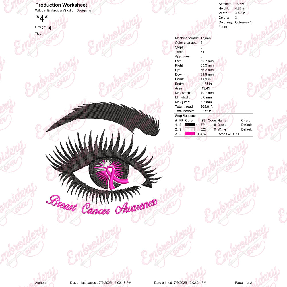Eyes Pink Ribbon Warrior Digital Download Machine Embroidery Design