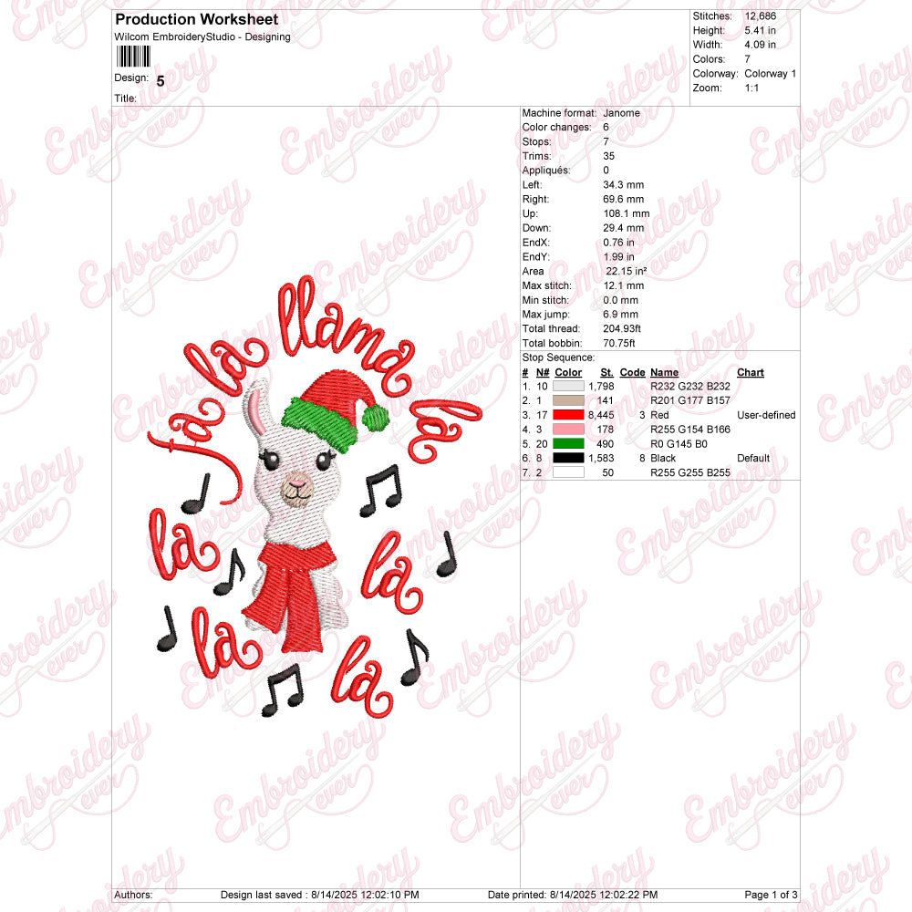 Let your creativity shine with this delightful Fa La La Llama Christmas Cheer embroidery design!