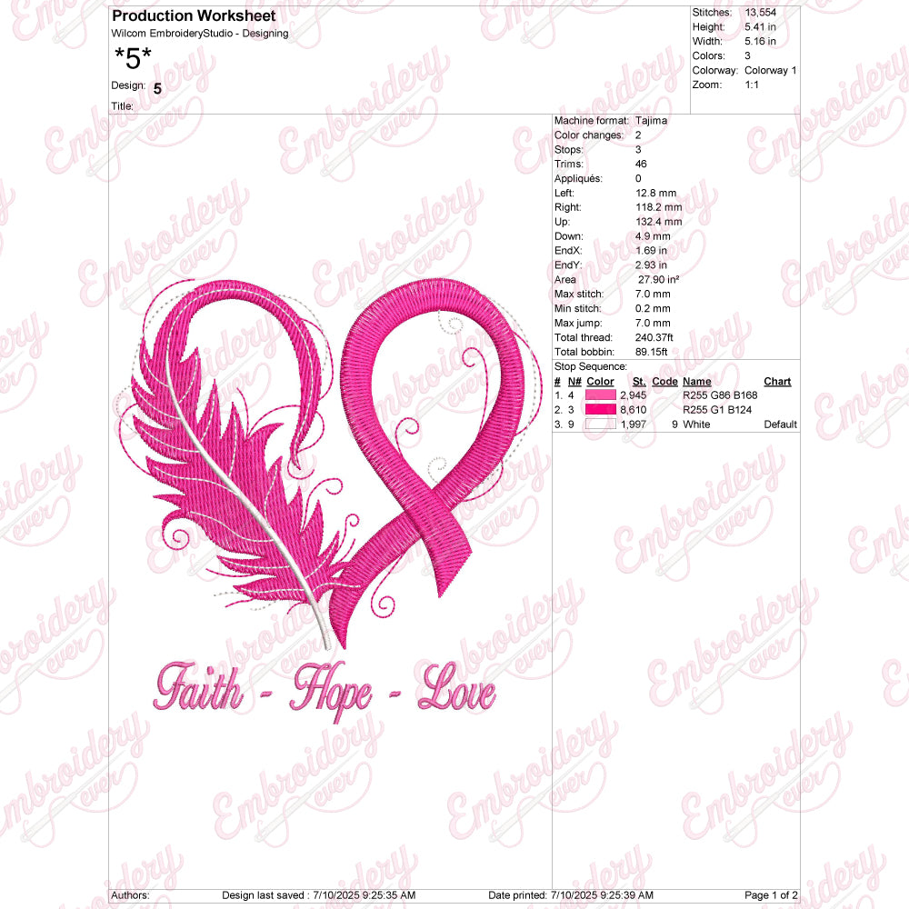 The Faith Hope Love Breast Cancer Embroidery File is a meticulously crafted digital design ideal for creating meaningful, high-quality embroidery projects. Designed with precision, this file features the powerful and uplifting message of "Faith, Hope, Love," often associated with breast cancer awareness and support. Suitable for various embroidery machines, it offers clear, detailed stitching paths that ensure excellent results on fabrics ranging from clothing to accessories. Perfect for personalizing gifts, fundraising items, or awareness campaigns, this embroidery file helps convey a message of strength and solidarity with breast cancer fighters and survivors. Its expert design ensures easy application and lasting durability.