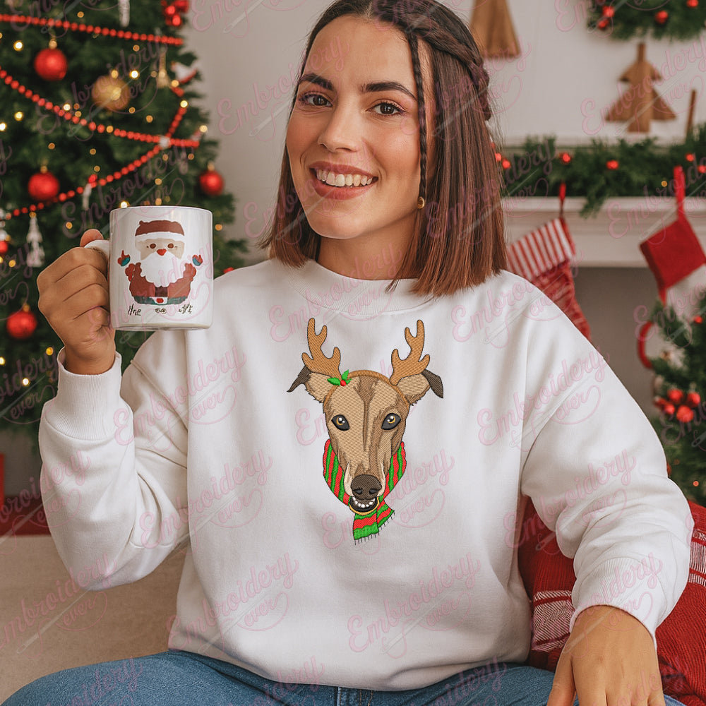 Greyhound Reindeer Christmas Digital Download Machine Embroidery Design