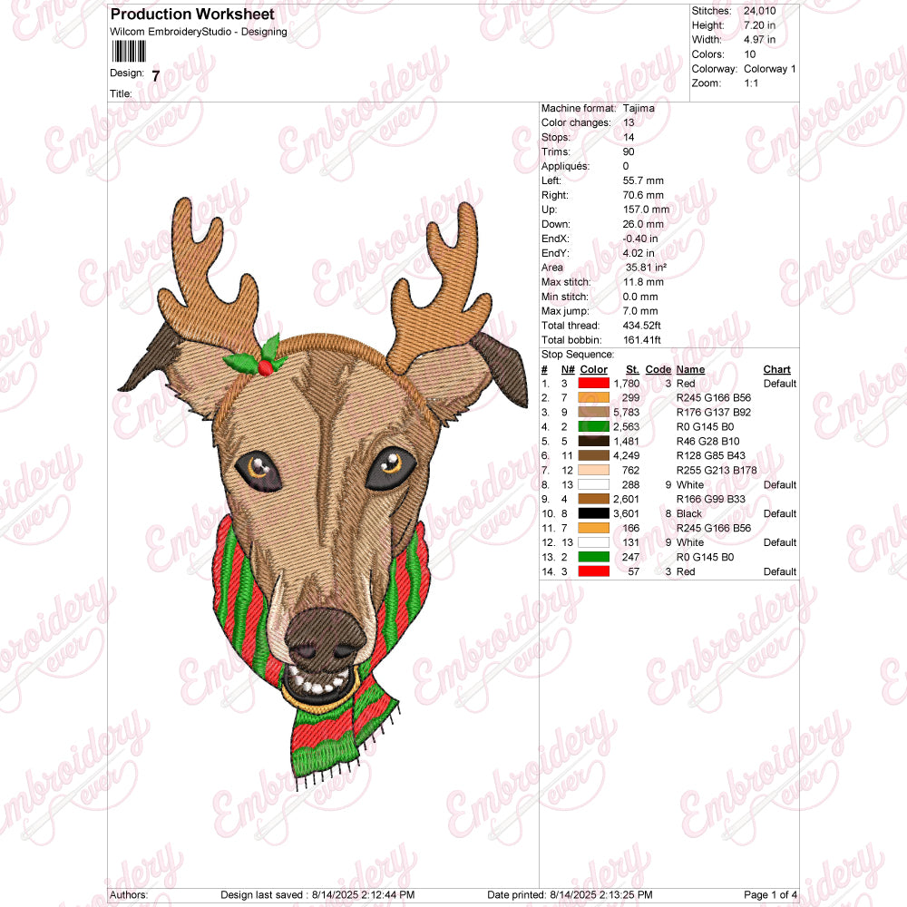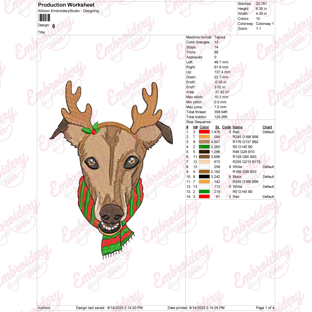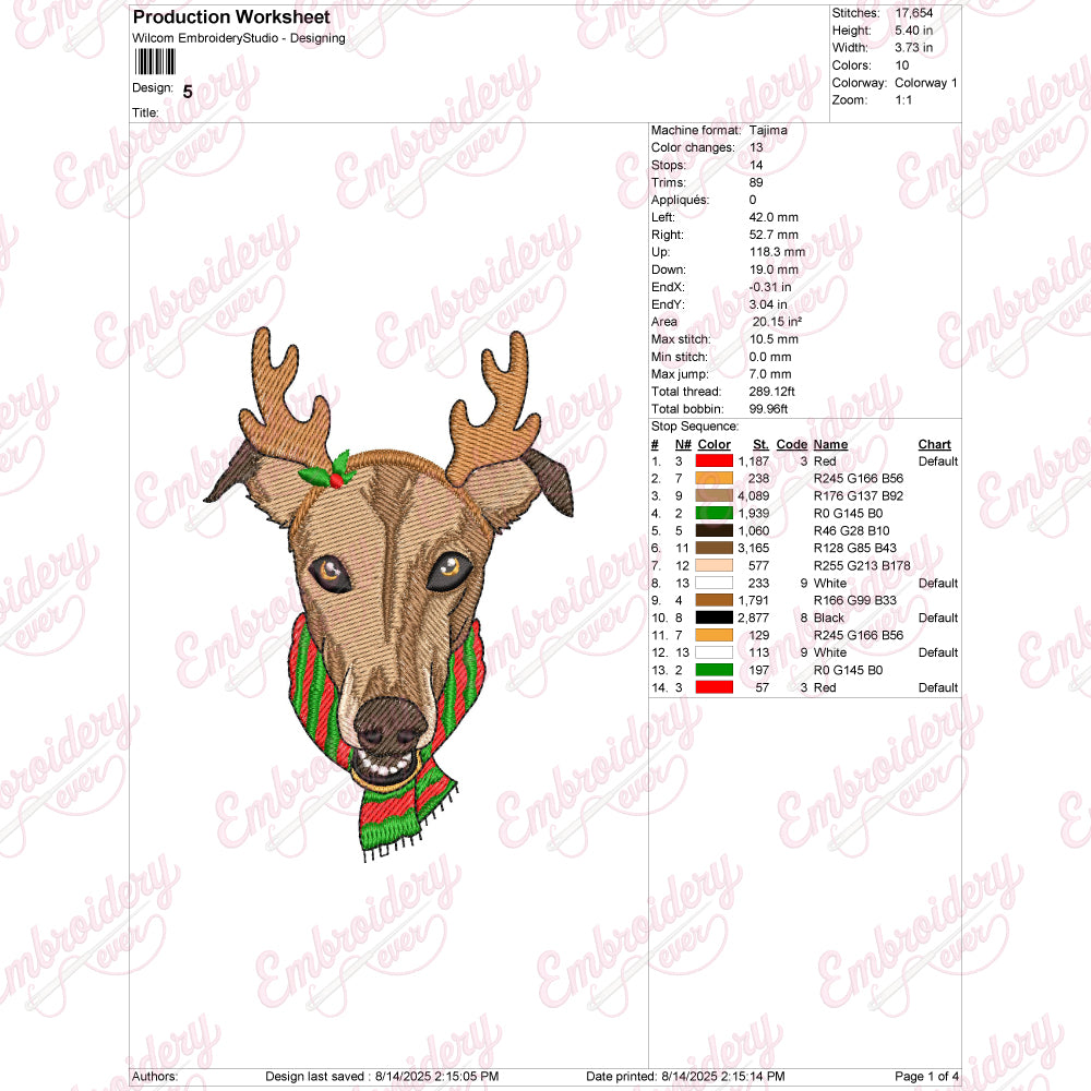 Let your creativity shine with this delightful Greyhound Reindeer Christmas embroidery design!