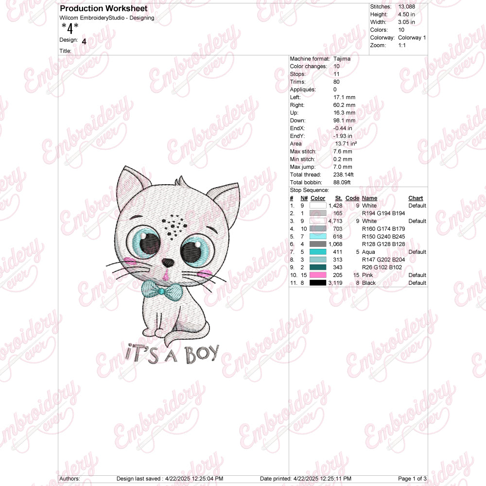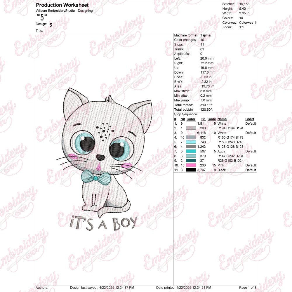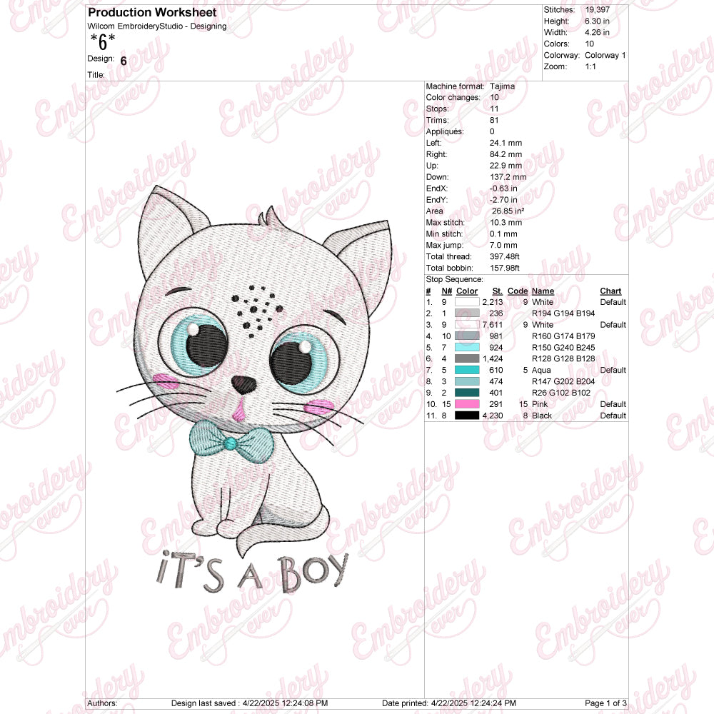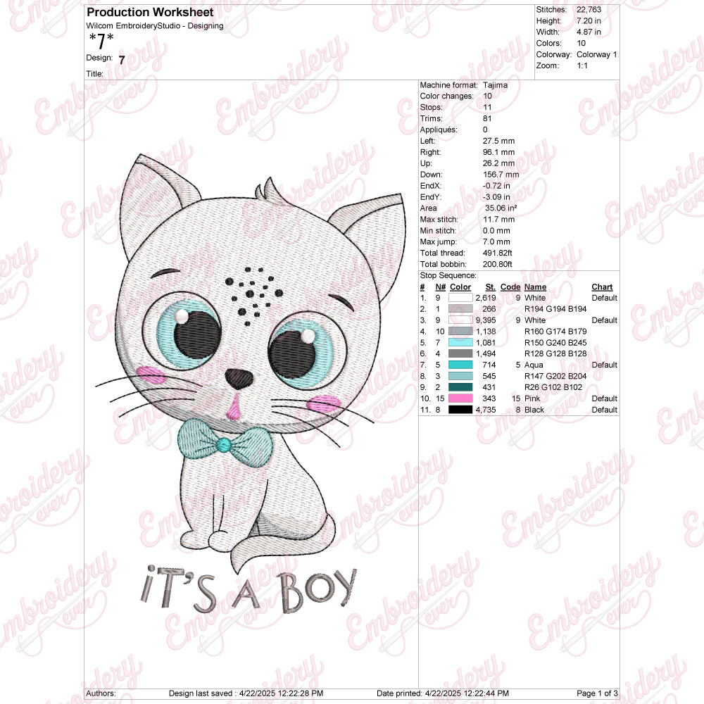 Let your creativity shine with this delightful It's a Boy Kitten embroidery design!