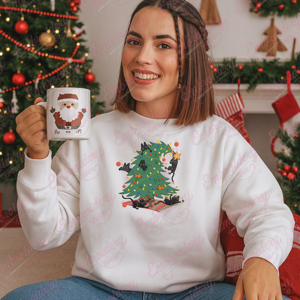 The Naughty Black Kittens Christmas Tree Embroidery Design captures a playful holiday spirit with charming detail and precision. This intricate embroidery pattern features mischievous black kittens entangled and climbing around a beautifully decorated Christmas tree, bringing a whimsical and festive touch to any fabric project. Expertly crafted, the design balances fine line work with bold shading to highlight the kittens’ sleek fur and the tree’s sparkling ornaments. Perfect for seasonal home décor, personalized gifts, or festive apparel, this design adds character and warmth to holiday creations. Its versatile size and clear stitch paths make it suitable for embroidery machines and hand stitching alike, ensuring a professional finish every time.