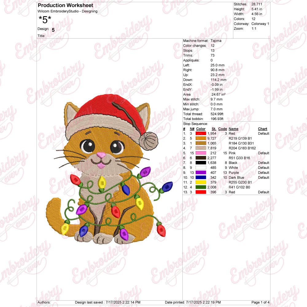 Let your creativity shine with this delightful Christmas Cat with Lights embroidery design!