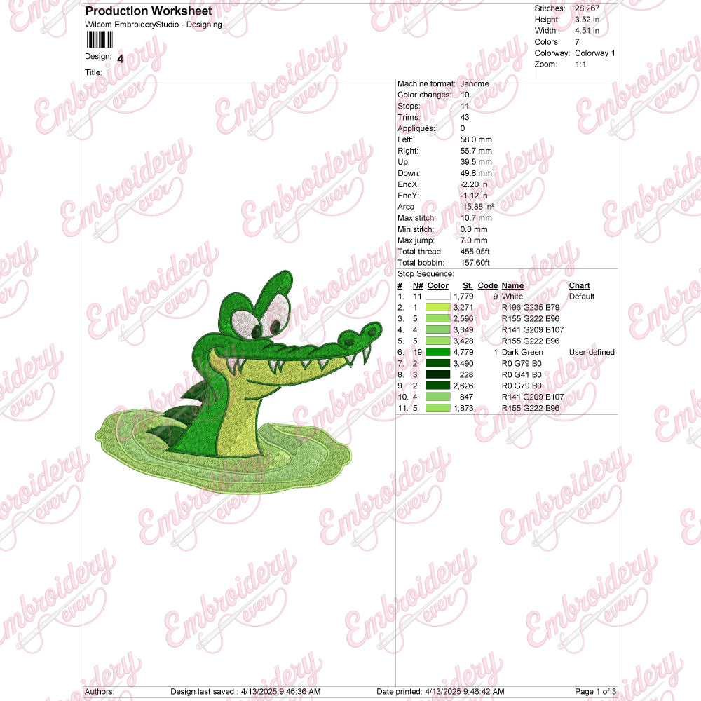 The Cute Crocodile Alligator Embroidery Design offers a charming and detailed representation of these fascinating reptiles, perfect for adding a playful yet sophisticated touch to your embroidery projects. Crafted with precision, this design captures the distinctive features of a crocodile or alligator, including textured scales and a friendly expression, making it ideal for children's clothing, accessories, or home décor. Its balanced composition ensures easy integration onto various fabric types, while the clear stitch paths facilitate smooth machine embroidery. This design combines artistic appeal with practical usability, allowing crafters to create unique, eye-catching pieces that stand out with expert craftsmanship.