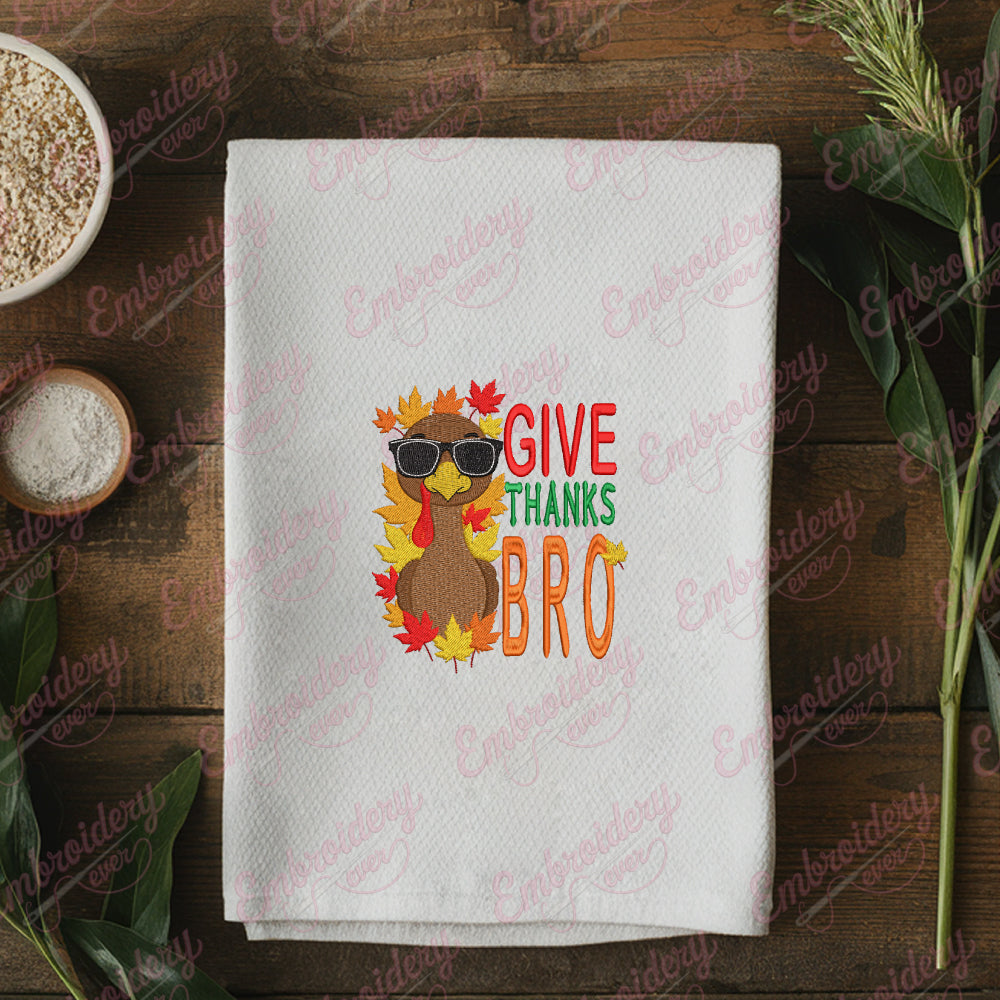 Let your creativity shine with this delightful Give Thanks Bro embroidery design!