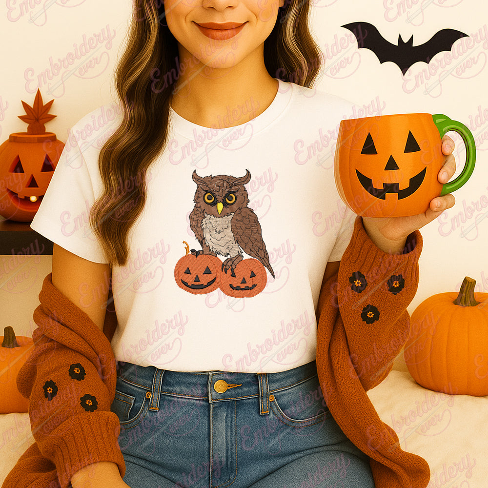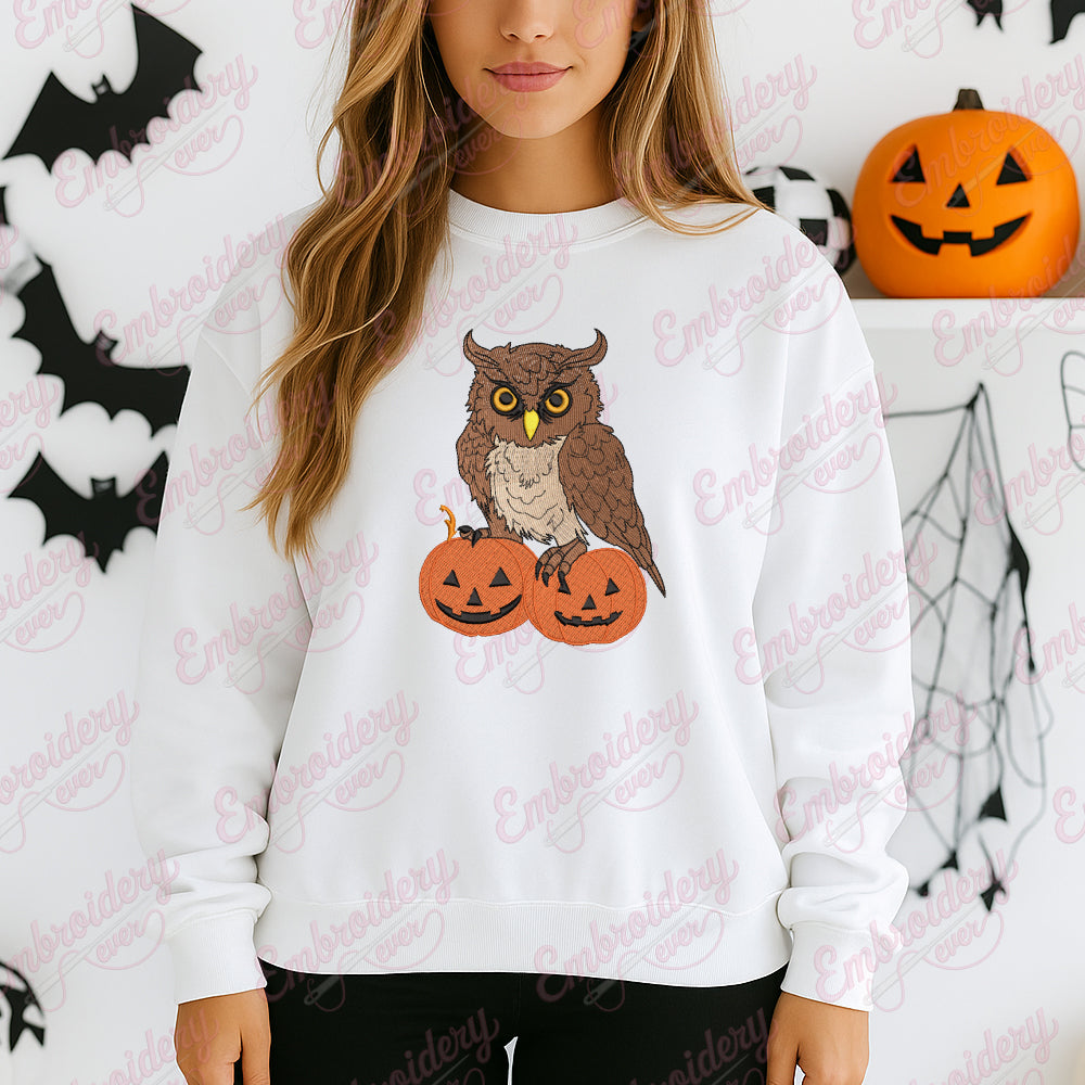 The Halloween Owl Pumpkin Embroidery Design captures the eerie charm of the spooky season with intricate craftsmanship. This design features a detailed owl perched on a pumpkin, blending traditional Halloween motifs with artistic precision. Its fine stitch work brings out the owl’s textured feathers and the pumpkin’s distinct ridges, creating a visually striking piece perfect for seasonal projects. Ideal for embellishing garments, home décor, or accessories, this embroidery design enhances your Halloween creations with a sophisticated touch. Compatible with popular embroidery machines, it offers seamless application and durability to withstand multiple washes, ensuring long-lasting festive appeal.
