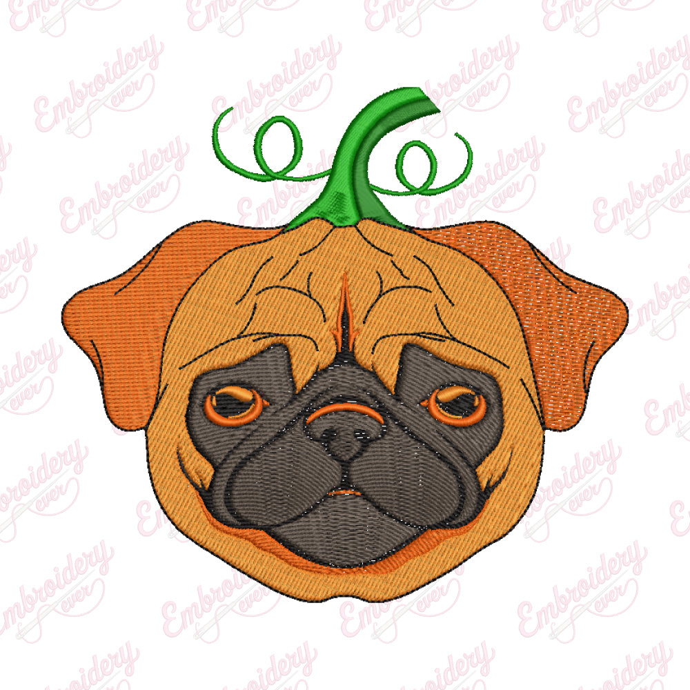 Pug Pumpkin Dog Digital Download Machine Embroidery Design