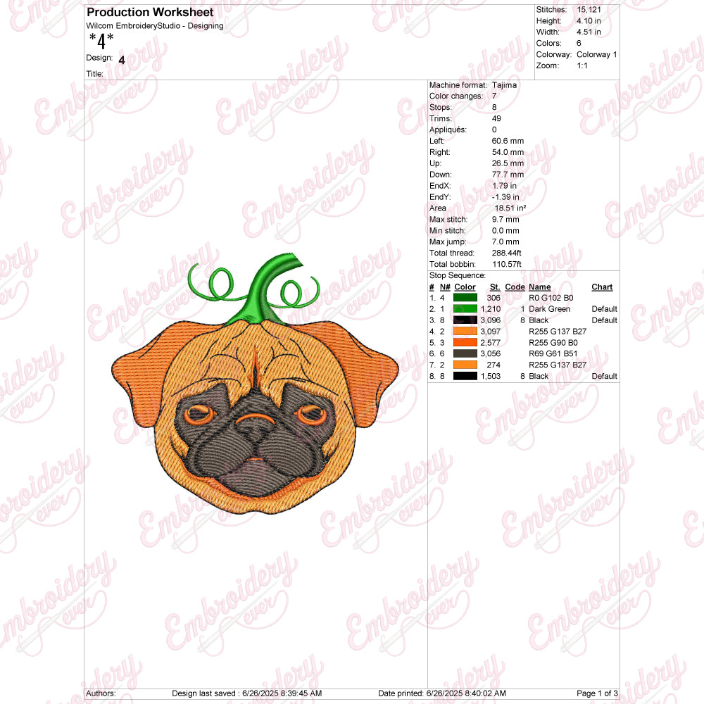 Let your creativity shine with this delightful Pug Pumpkin Dog embroidery design!