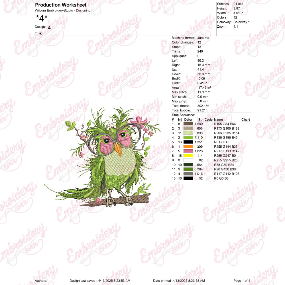 The Whimsical Bird With Glasses Embroidery Design captures a charming and playful character, perfect for adding a touch of personality to your textile projects. This intricate design features a stylized bird adorned with distinctive glasses, blending whimsy with sophistication. Expertly crafted with fine detailing, it offers excellent stitch definition and smooth color transitions, ensuring a polished finish on fabrics. Ideal for embellishing clothing, accessories, or home décor, this embroidery design brings a unique, artistic flair that stands out. Its versatile size and clear lines make it suitable for both machine embroidery enthusiasts and professionals seeking to elevate their creations with a distinctive, imaginative motif.