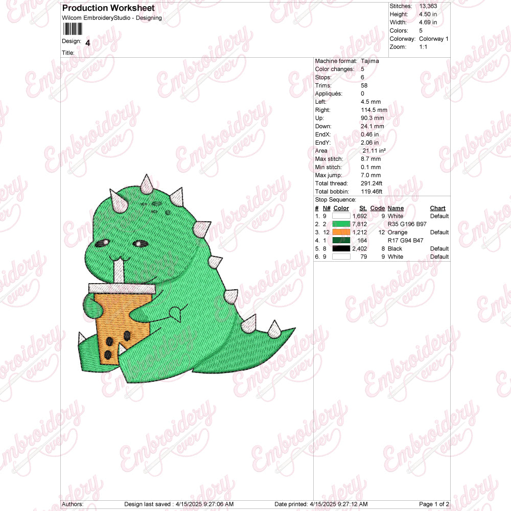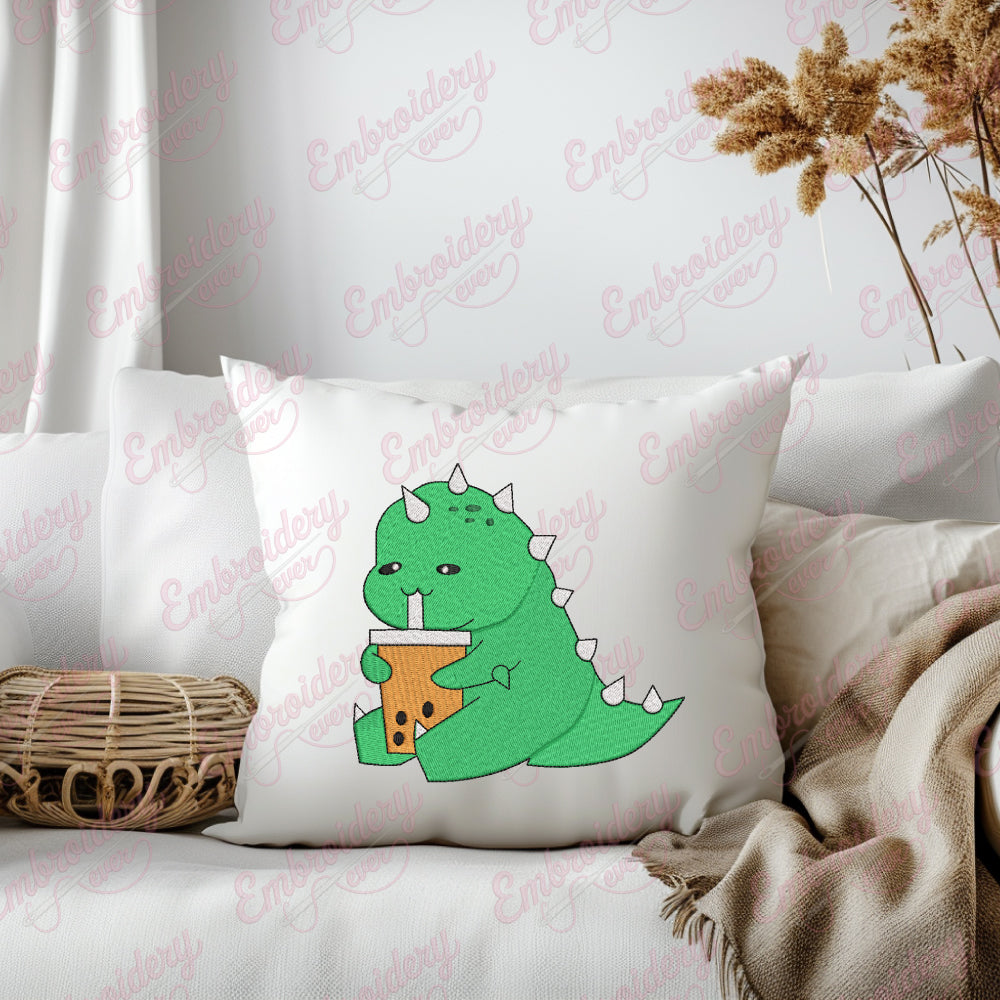 Let your creativity shine with this delightful Boba Drinking Dinosaur embroidery design!