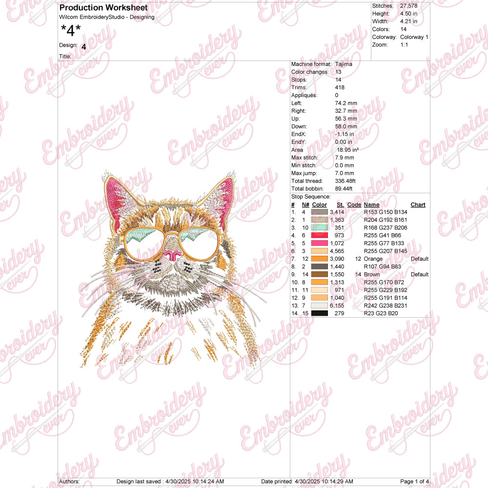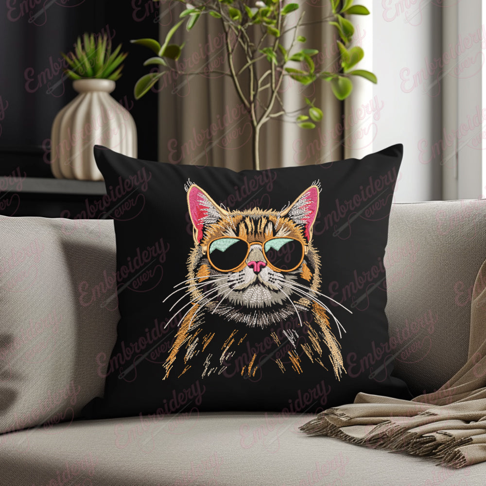 The Cat With Sunglasses Embroidery Design showcases a stylish feline adorned with trendy sunglasses, perfect for adding a touch of personality to your textile projects. Expertly crafted with intricate stitch details, this design captures the playful yet cool essence of the cat, making it ideal for embellishing clothing, accessories, or home décor. Its balanced composition allows for easy integration on various fabric types and sizes, offering versatility in application. Whether you're updating casual apparel or creating unique gifts, this embroidery design delivers a refined and contemporary aesthetic that enhances your handcrafted items with lasting charm.