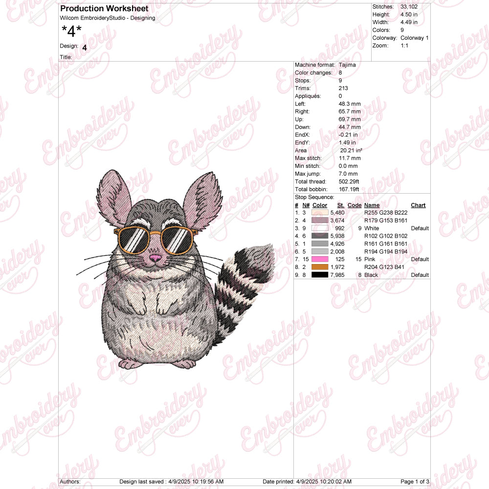 Let your creativity shine with this delightful Chinchilla in Sunglasses embroidery design!