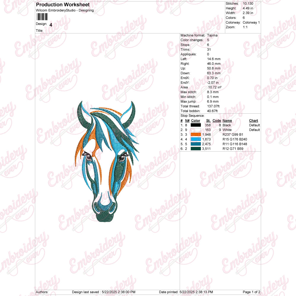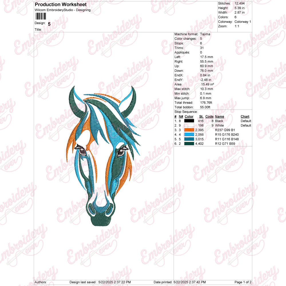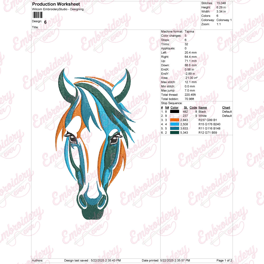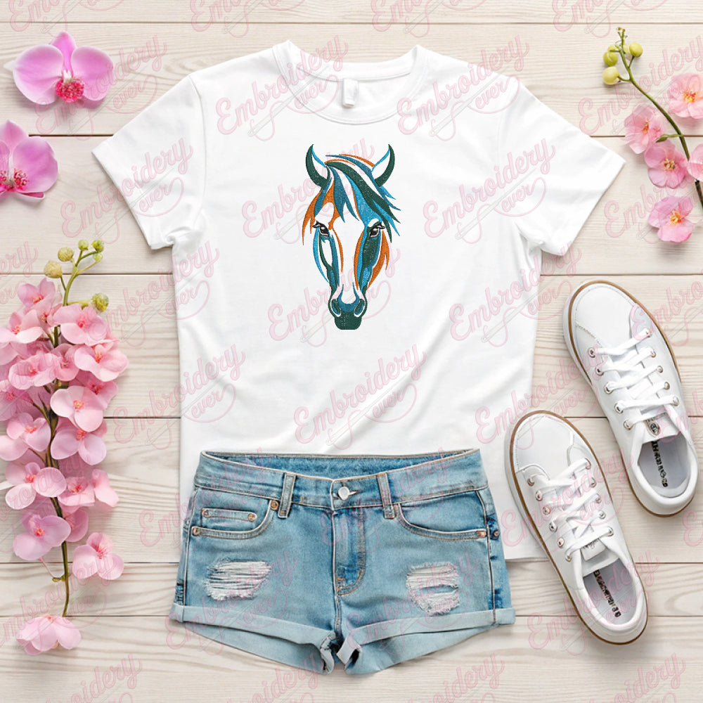 The Colorful Horse Head Embroidery Design showcases an intricate and vibrant artwork that captures the majestic spirit of the horse with expert precision. This design integrates a rich palette of colors, carefully balanced to emphasize the dynamic contours and flowing mane, bringing the image to life with remarkable depth and texture. Ideal for embellishing garments, home décor, or accessories, this embroidery pattern offers versatility for various fabric types and stitching techniques. Its detailed layering ensures a durable, eye-catching finish, perfect for those seeking to add a sophisticated and artistic touch to their embroidery projects. This design exemplifies craftsmanship combined with creative flair, suitable for advanced embroidery enthusiasts aiming to make a bold statement.