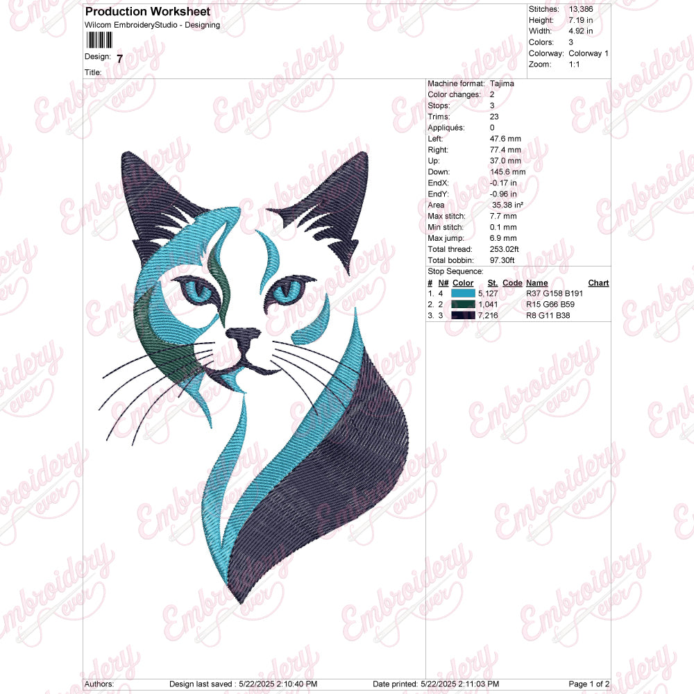 Capture the charm of modern artistry with the Contemporary Kitty Cat Embroidery Design. This intricate pattern blends clean, stylish lines with subtle detailing to create a sophisticated feline silhouette that complements contemporary decor and fashion. Designed for versatility, it works beautifully on a variety of fabrics, from cotton to linen, making it ideal for apparel, home textiles, or accessories. The design balances elegance with playfulness, offering an expert stitcher a rewarding project that showcases precision and creativity. Its clear, well-defined contours ensure even novices can achieve a polished finish, while experienced embroiderers can customize thread colors for unique effects. Perfect for elevating any creation with a touch of modern feline grace.