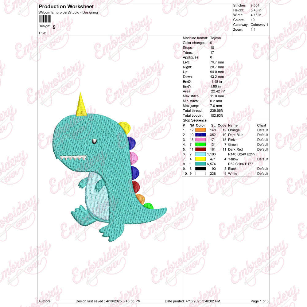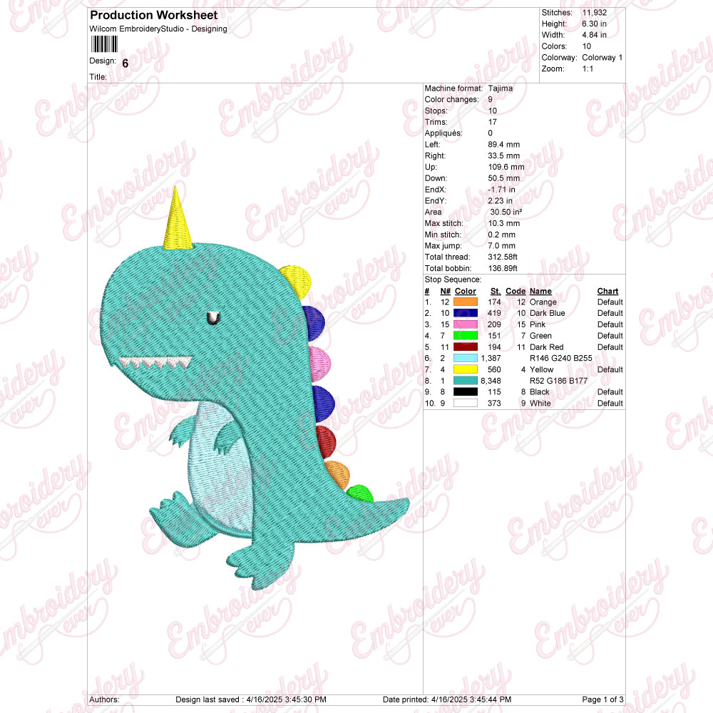 Dinocorn Digital Download Machine Embroidery Design