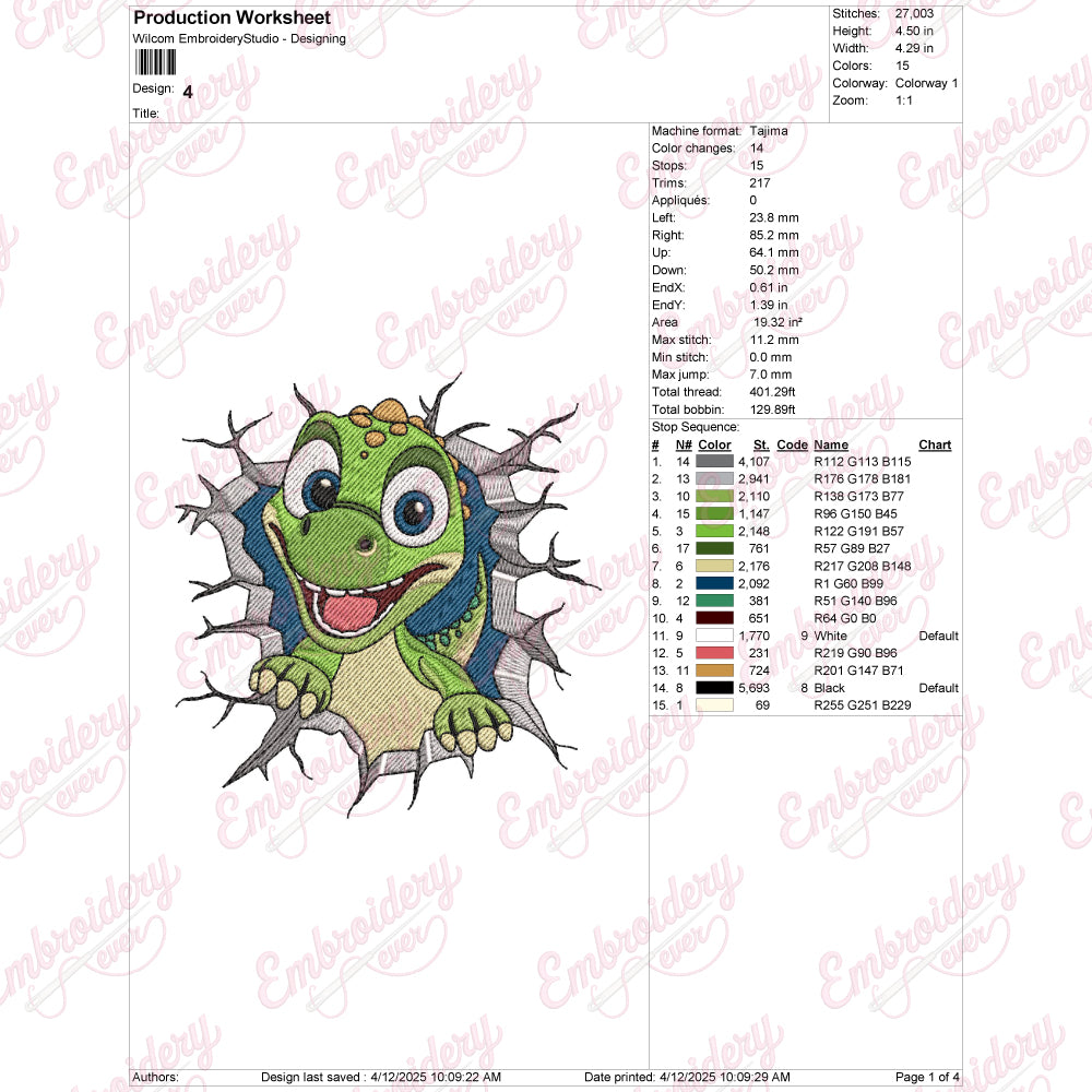 The Cute Dinosaur Embroidery Design offers a charming and detailed pattern perfect for adding a playful touch to any fabric project. Expertly crafted, this design features a friendly dinosaur with smooth lines and balanced proportions, making it ideal for both beginners and experienced embroiderers. Its clear stitch paths ensure easy application on various materials such as clothing, accessories, or home décor items. The design’s versatility allows for customization in thread colors, enabling you to create unique, personalized pieces. Durable and visually appealing, this embroidery pattern enhances your creations with a fun, whimsical character that appeals to all ages.