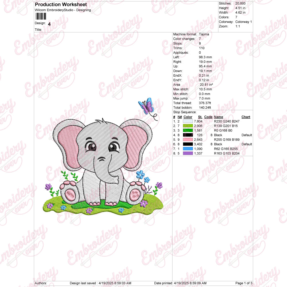 The Cute Elephant Embroidery Design captures the charm and innocence of a playful elephant with intricate stitching details that bring the character to life. Expertly crafted, this design features smooth curves and delicate accents that highlight the elephant’s gentle features, making it ideal for embellishing children’s clothing, accessories, or nursery decor. The design’s balanced composition ensures it stands out clearly on various fabric types, while its moderate size allows for versatile application. Perfect for embroidery enthusiasts seeking a blend of whimsy and sophistication, this design adds a touch of warmth and personality to any project, showcasing craftsmanship and attention to detail.