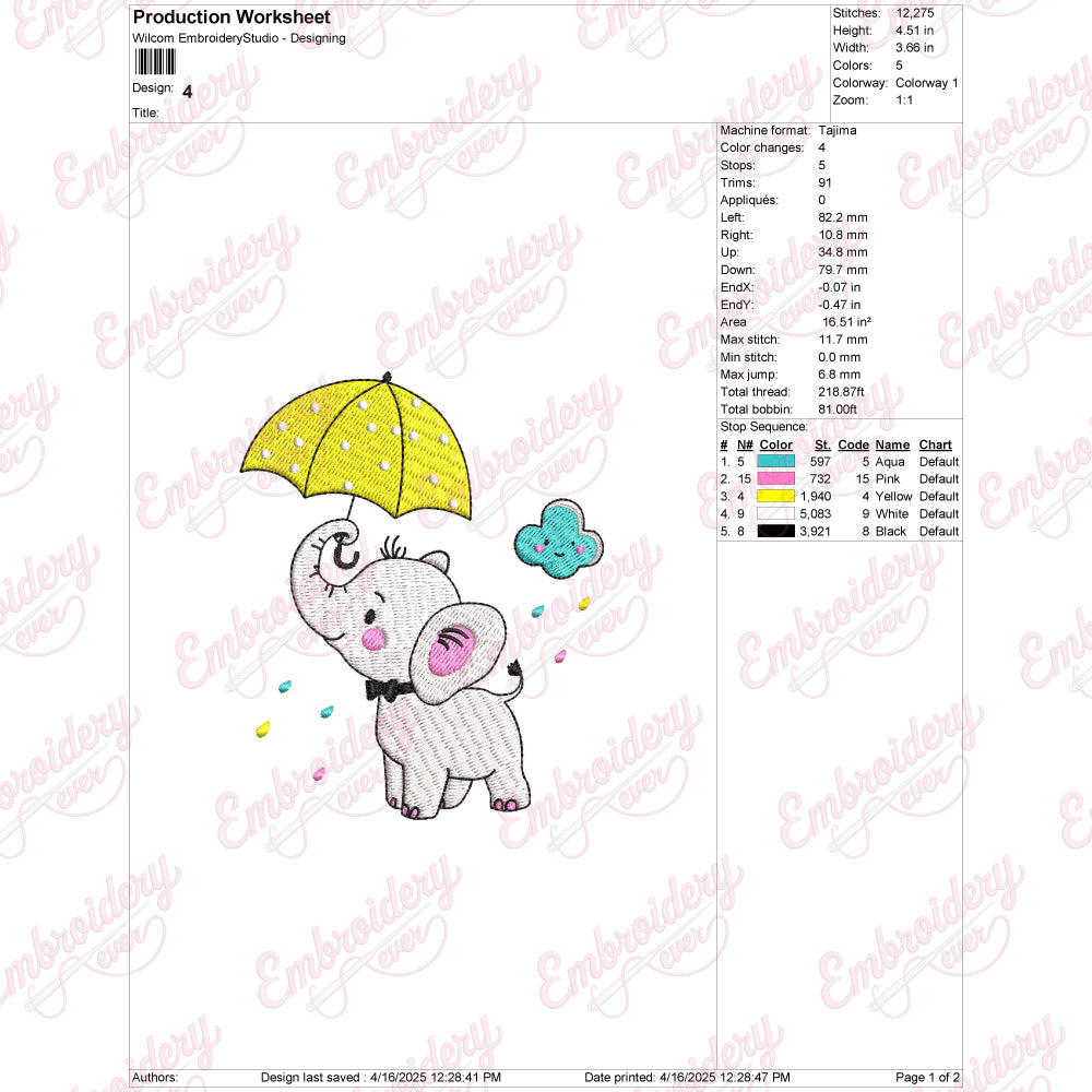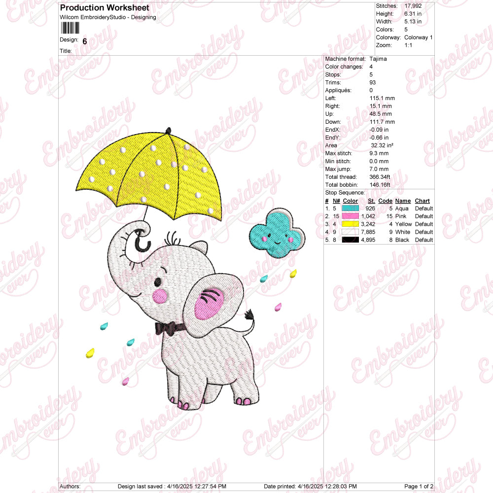 Let your creativity shine with this delightful Cute Elephant With Umbrella embroidery design!