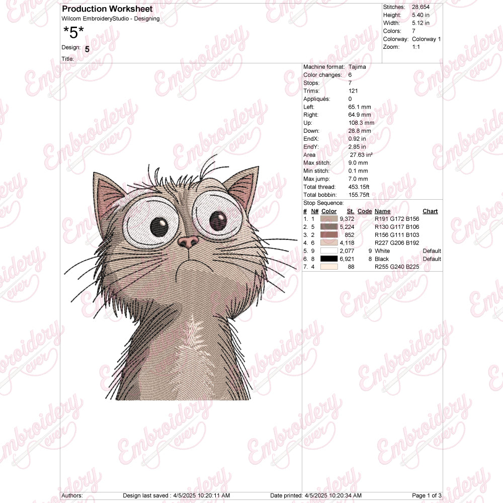 The Funny Cat Face Embroidery Design captures the playful and quirky charm of feline expressions with expert precision. Crafted with intricate stitch details, this design brings a lively personality to any fabric, making it perfect for adding a touch of humor and character to clothing, accessories, or home décor. Its balanced composition ensures clear visibility of the cat’s amusing features, from the mischievous eyes to the cheeky grin. Ideal for embroidery enthusiasts seeking to elevate their projects, this design combines artistic flair with technical excellence, resulting in a durable and visually appealing embellishment that delights cat lovers and creative crafters alike.