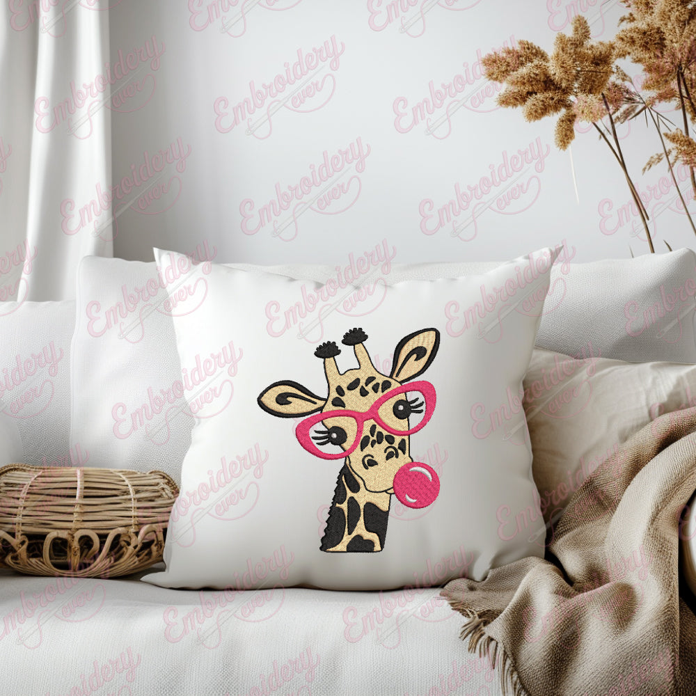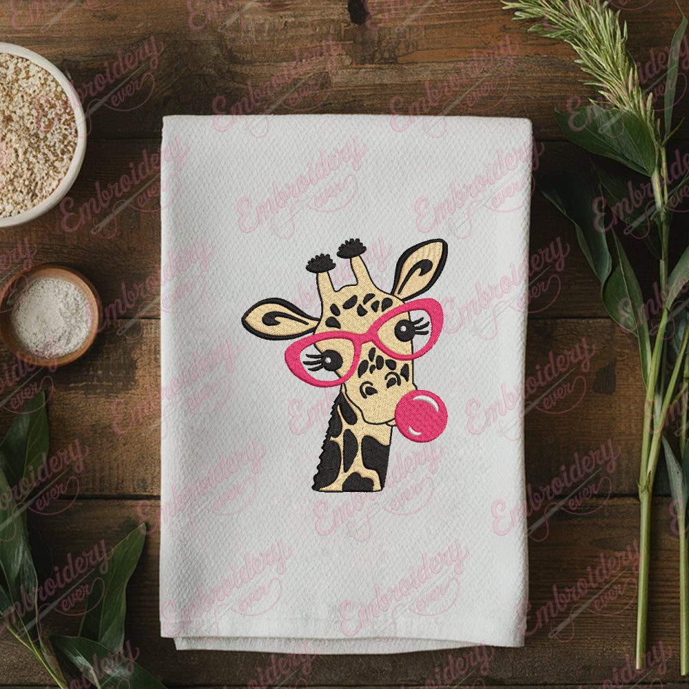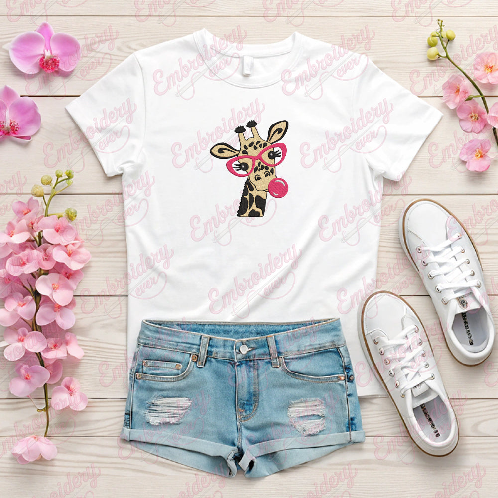 Let your creativity shine with this delightful Giraffe Glasses Bubble Gum embroidery design!