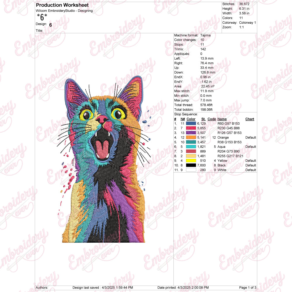 Let your creativity shine with this delightful Multi Colored Cat embroidery design!