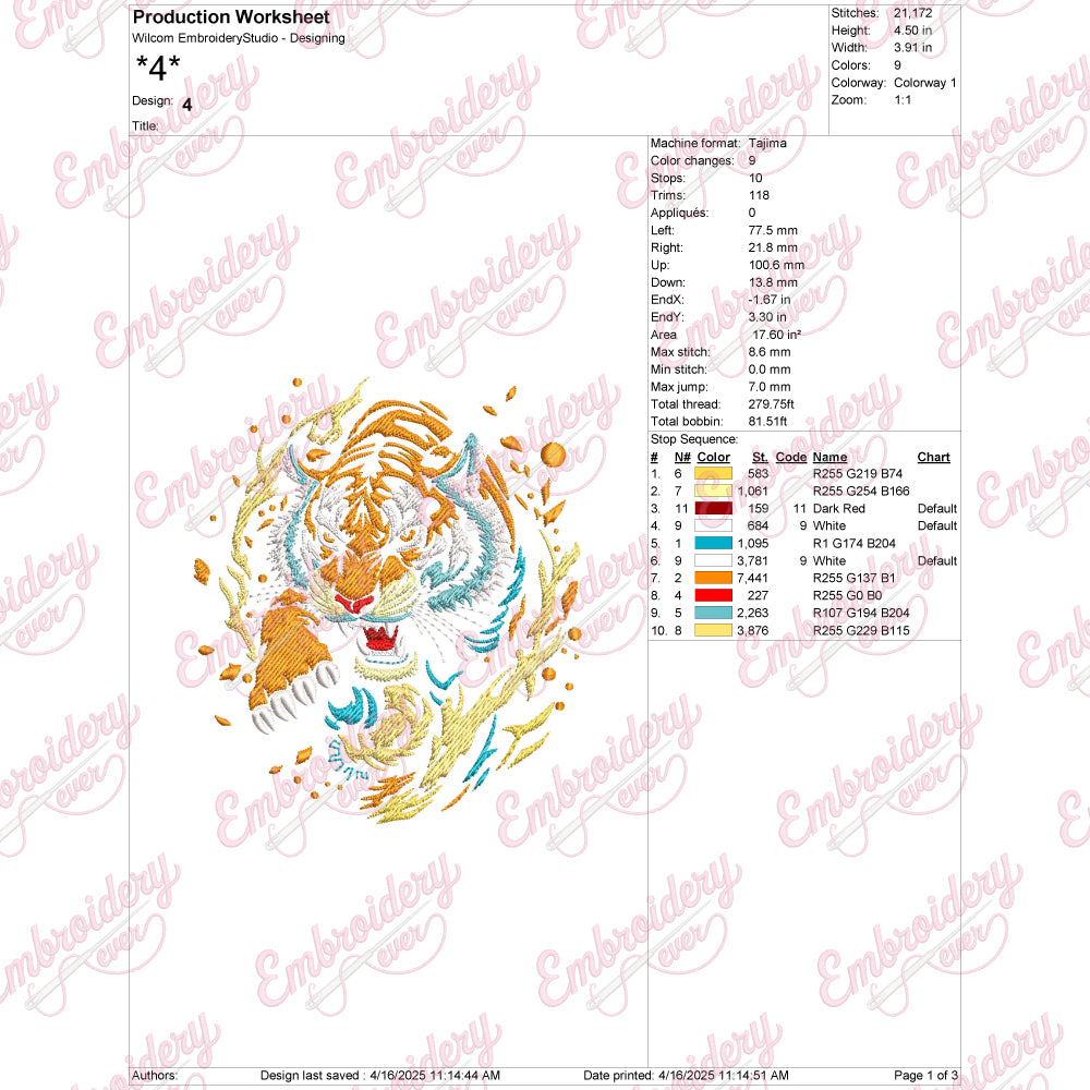 Let your creativity shine with this delightful Tiger embroidery design!