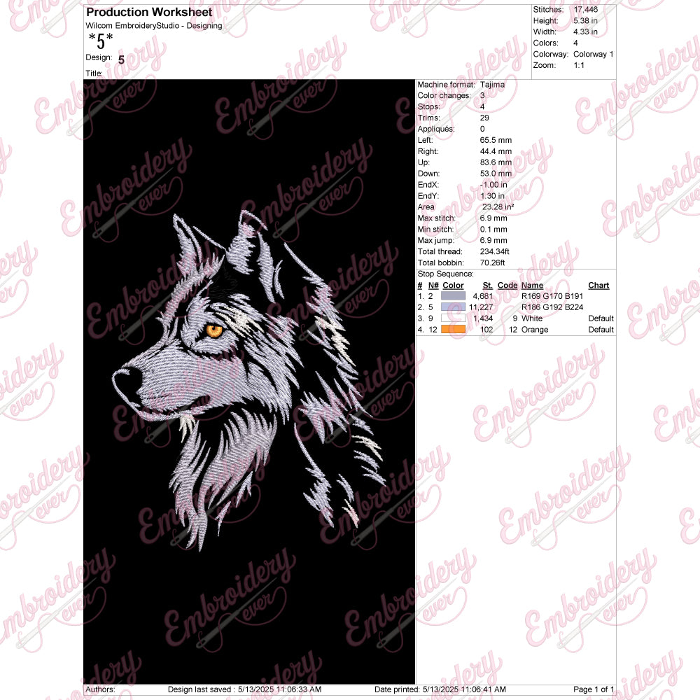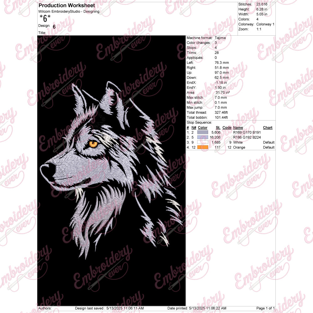 The White Wolf Head Embroidery Design showcases a striking and detailed depiction of a wolf's head, rendered with precision to capture the animal's fierce and majestic essence. This design features intricate stitching that highlights the texture of the fur, sharp eyes, and distinct contours of the wolf’s face, making it a standout choice for embroidery projects. Ideal for adding a bold and symbolic touch, it suits a variety of fabric types and garments, from jackets to hats. The design's balanced complexity offers an expert-level challenge while ensuring a stunning and professional finish, perfect for those seeking to elevate their crafting with sophisticated wildlife artistry.