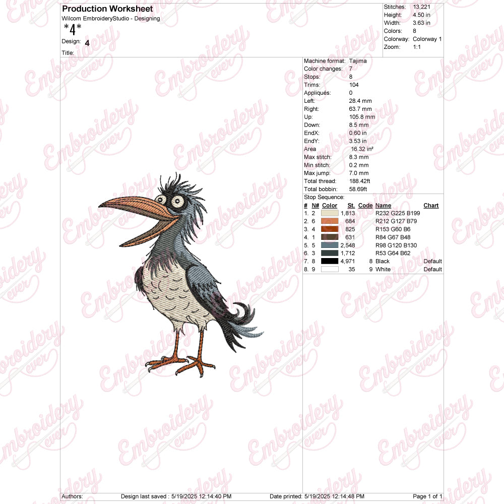 This Cartoon Bird With Long Beak Embroidery Design captures a playful yet refined aesthetic, ideal for adding character to a variety of textile projects. The detailed illustration emphasizes the bird’s distinctive elongated beak, lending a unique focal point that stands out with clarity and charm. Crafted with precise stitch work, the design balances bold lines and delicate textures, ensuring excellent definition on fabric. Its versatile size fits perfectly on apparel, accessories, or home décor, enhancing items with a touch of whimsy and sophistication. Whether used for personal crafting or professional branding, this embroidery pattern offers both creativity and lasting quality.