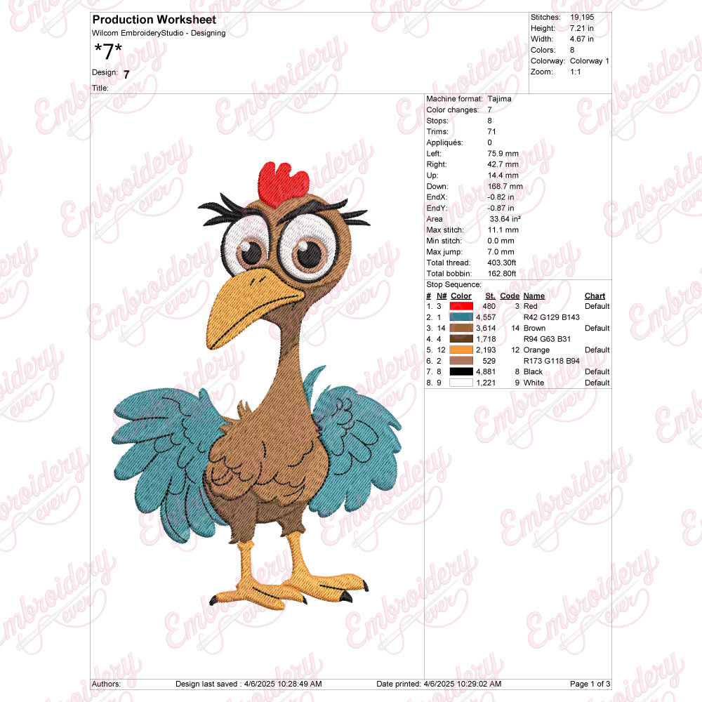 The Chicken With Big Brown Eyes Embroidery Design captures the charming essence of a chicken with strikingly large, expressive brown eyes. Expertly crafted, this design offers intricate detailing that brings the character to life, making it an excellent choice for adding personality to textiles. Ideal for embroidery enthusiasts seeking a unique and whimsical motif, it works beautifully on a variety of fabric types, from clothing to home décor. The detailed stitching ensures durability and a polished finish, allowing your projects to stand out with a touch of warmth and character. Perfect for both beginners and seasoned embroiderers aiming to enhance their creations with a distinctive, eye-catching design.