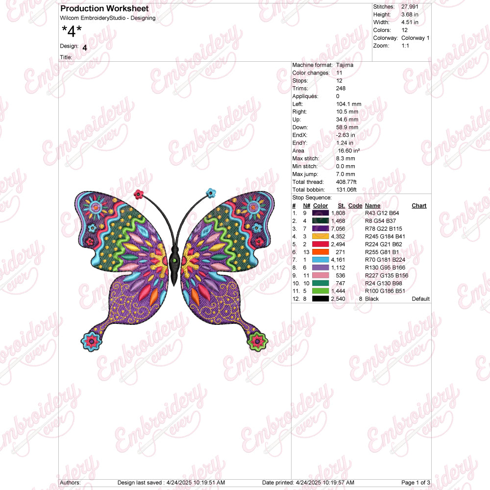 The Colorful Butterfly Embroidery Design showcases intricate craftsmanship with vibrant hues that bring the butterfly to life. This design features detailed wing patterns and a harmonious blend of colors, making it ideal for enhancing garments, accessories, or home textiles. Expertly digitized for precision, it ensures smooth stitching and durability on various fabric types. The design’s complexity allows for a rich texture and depth, providing a professional finish to your embroidery projects. Perfect for adding a touch of elegance and nature-inspired beauty, this butterfly motif elevates any item with its vivid colors and refined details.
