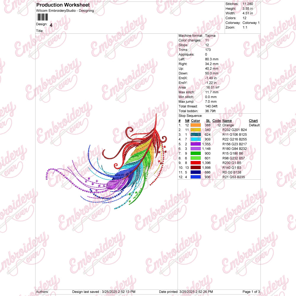 Let your creativity shine with this delightful Colorful Feather embroidery design!