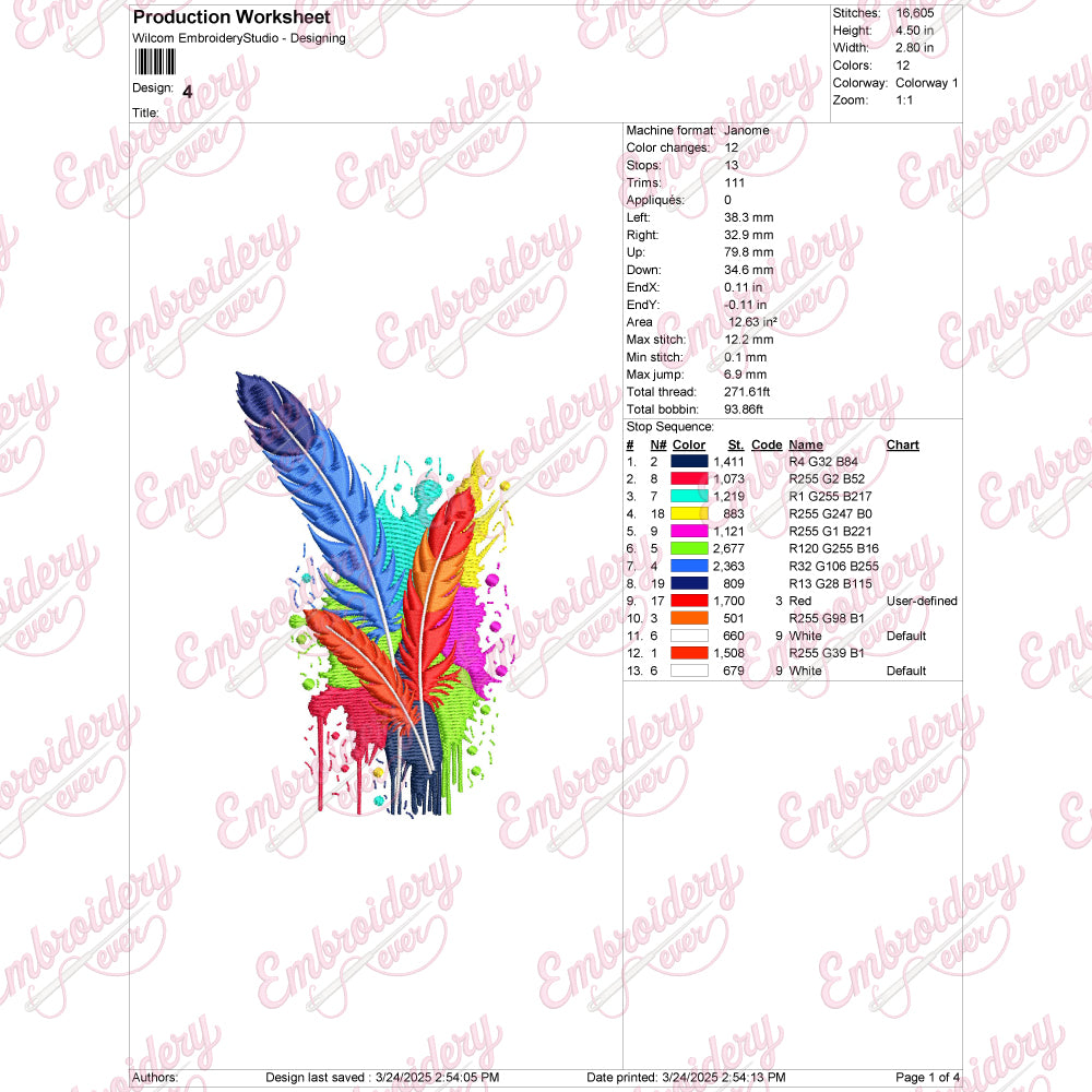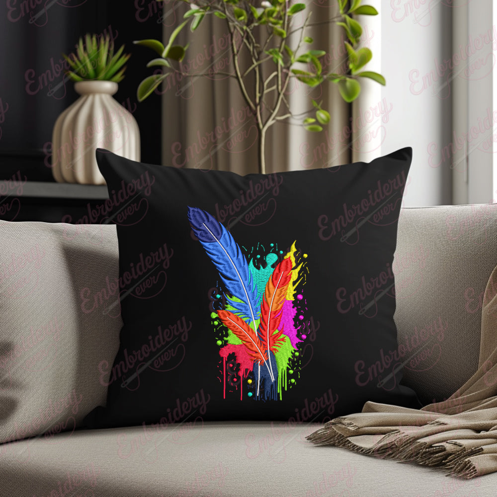 The Colorful Three Feathers Embroidery Design showcases a vibrant and intricate pattern featuring three distinct feathers, each rendered in a rich palette of colors. This design highlights fine detailing and precise stitching, making it ideal for adding a touch of elegance and artistic flair to garments, accessories, or home textiles. The varied hues within the feathers create depth and visual interest, enhancing the overall aesthetic appeal. Perfect for embroidery enthusiasts seeking a sophisticated yet lively motif, this design can elevate any fabric with its expert craftsmanship and dynamic color composition, ensuring a standout finish on your creative projects.
