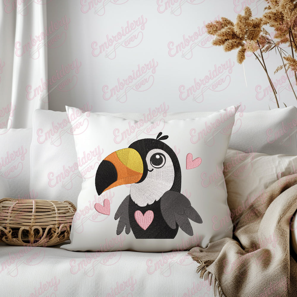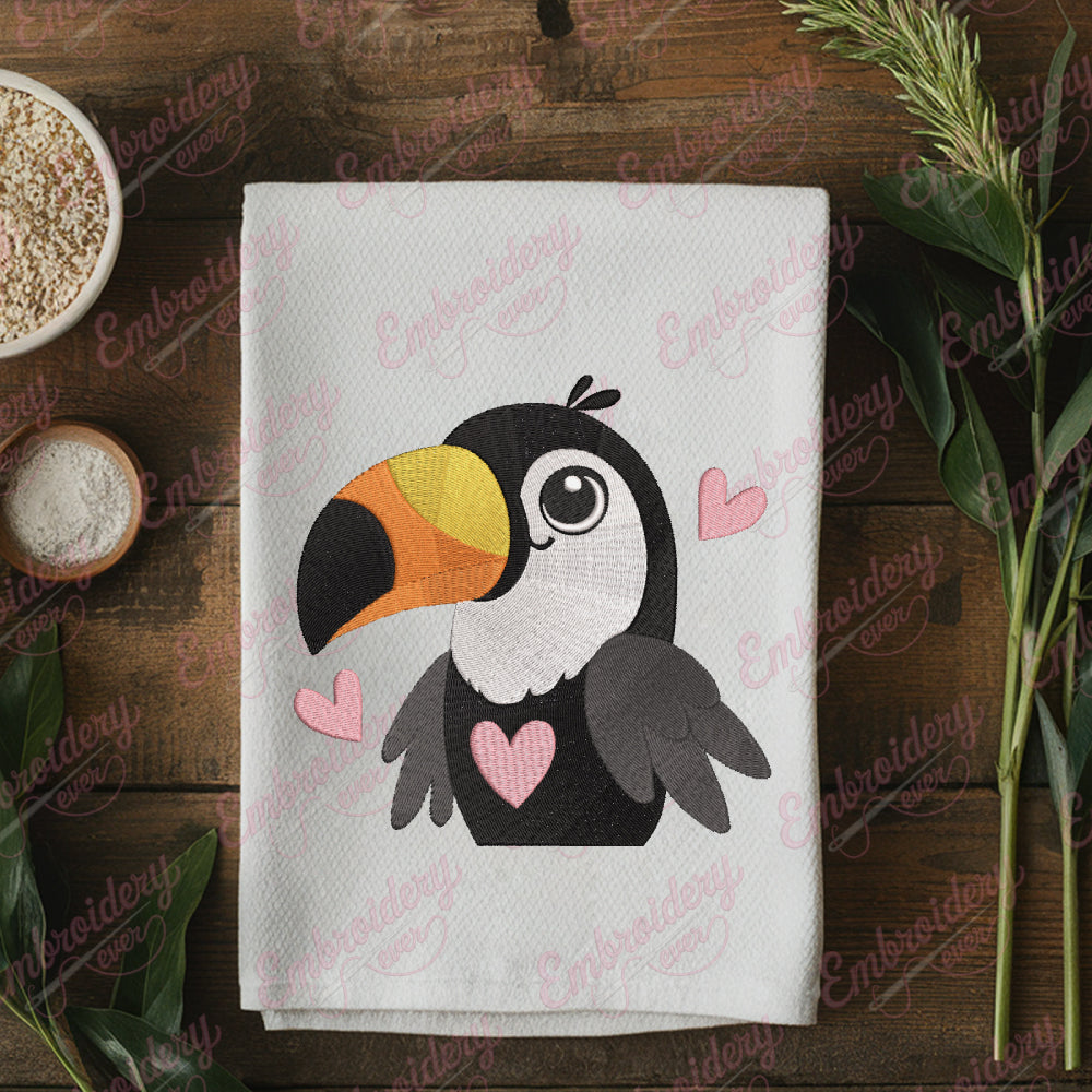 The Cute Toucan Bird Embroidery Design captures the vibrant charm of this iconic tropical bird with intricate detailing and vivid colors. Expertly crafted, this design highlights the toucan’s distinctive large beak and striking plumage, making it an excellent choice for adding a lively, exotic touch to garments, accessories, or home décor. Its precise stitching ensures durability and a polished finish, suitable for both machine and hand embroidery projects. Ideal for nature enthusiasts and embroidery aficionados alike, this design brings a playful yet sophisticated element to your creative work, enhancing any fabric with a burst of tropical elegance.