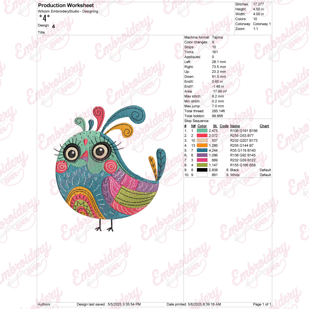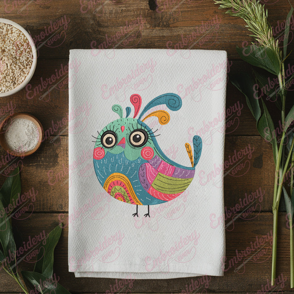 Let your creativity shine with this delightful Elegant Colorful Bird embroidery design!