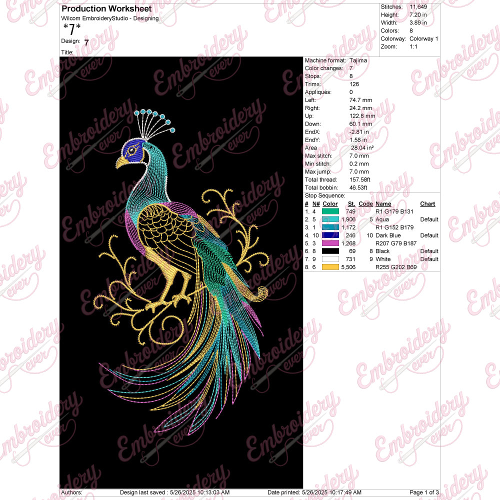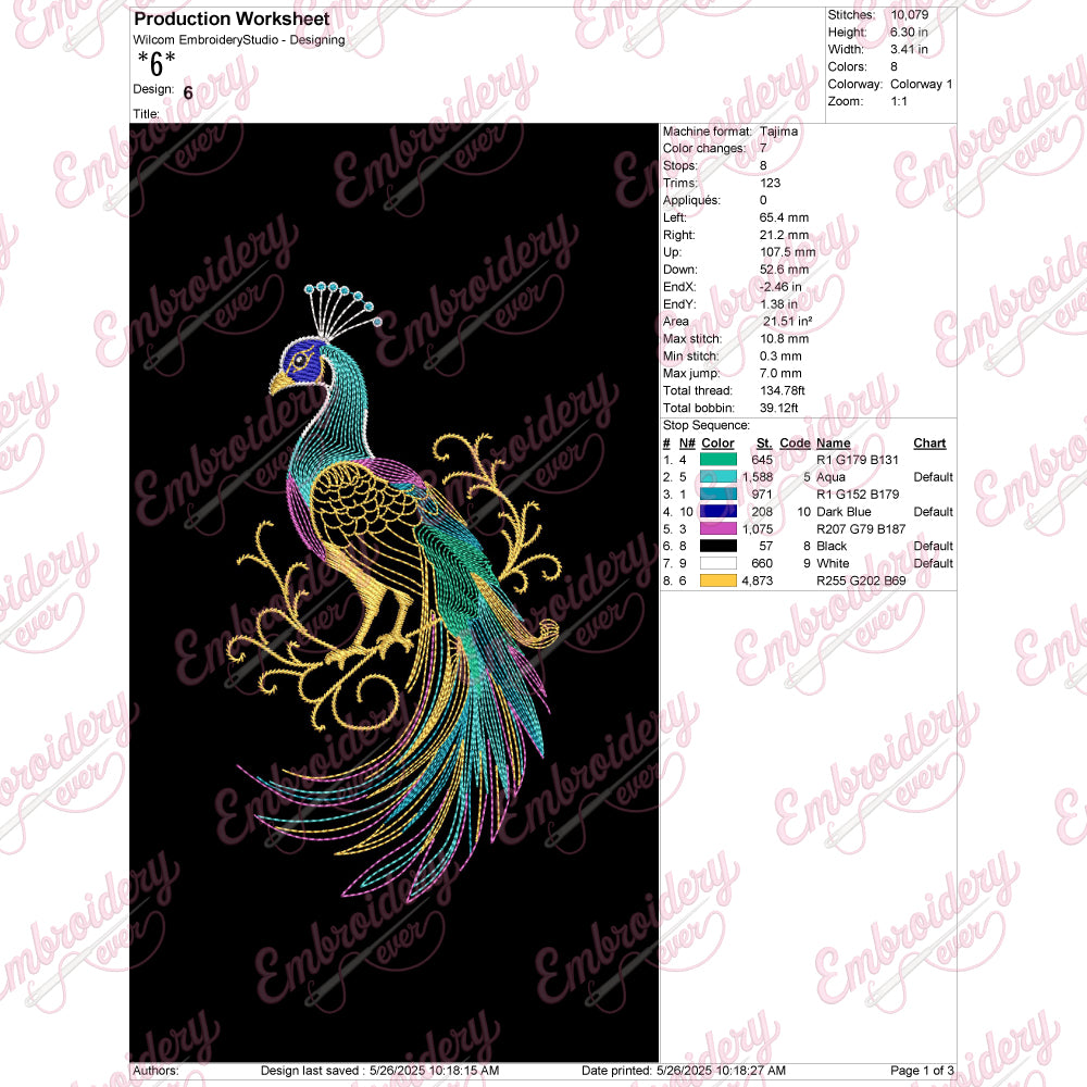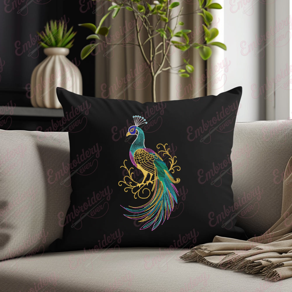 The Elegant Peacock Embroidery Design captures the majestic beauty and intricate detail of the peacock, symbolizing grace and sophistication. Expertly crafted, this design features fine, flowing lines that replicate the natural plumage of the bird with remarkable precision. Each feather is designed to showcase depth and texture, offering a rich visual appeal that enhances any fabric it adorns. Its balanced composition makes it ideal for a variety of applications including apparel, home décor, and accessories, adding a touch of timeless elegance. This design not only elevates your embroidery projects but also offers a durable and versatile pattern suitable for both machine and hand embroidery techniques.