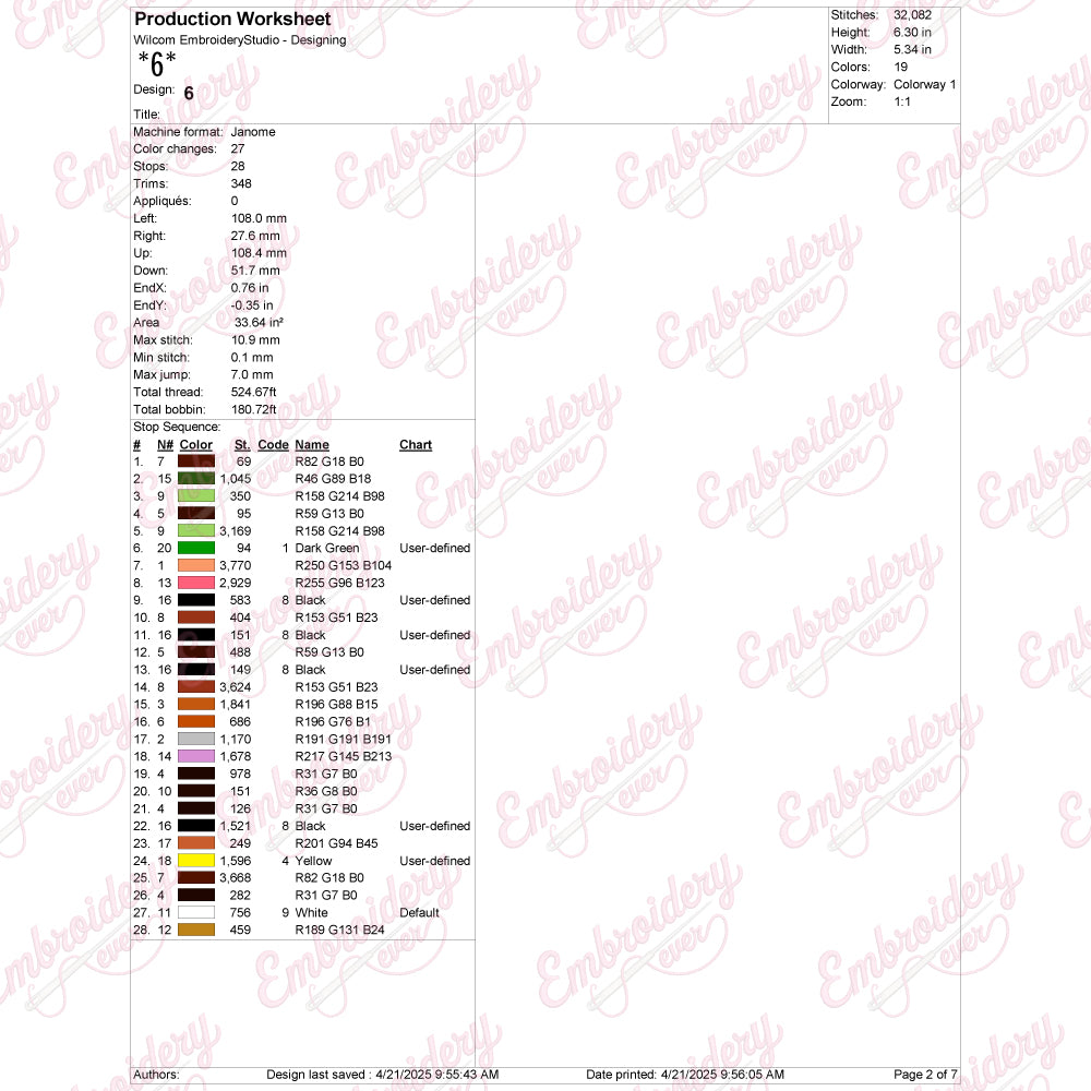 The Floral Giraffe with Butterfly Embroidery Design is a sophisticated and intricate pattern that combines natural elegance with artistic detail. This design features a graceful giraffe adorned with delicate floral motifs, seamlessly integrated to highlight the animal’s unique silhouette. A charming butterfly adds a touch of whimsy and movement, enhancing the overall composition. Ideal for advanced embroidery projects, this design offers fine line work and detailed shading that bring depth and texture to fabric. Perfect for embellishing garments, accessories, or home décor, it allows crafters to showcase expert-level stitching skills while creating a visually captivating piece.
