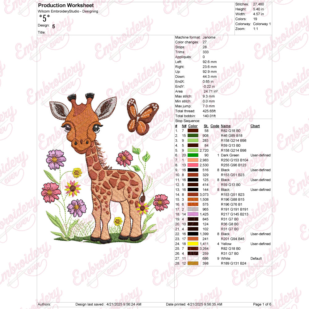 Let your creativity shine with this delightful Floral Giraffe with Butterfly embroidery design!